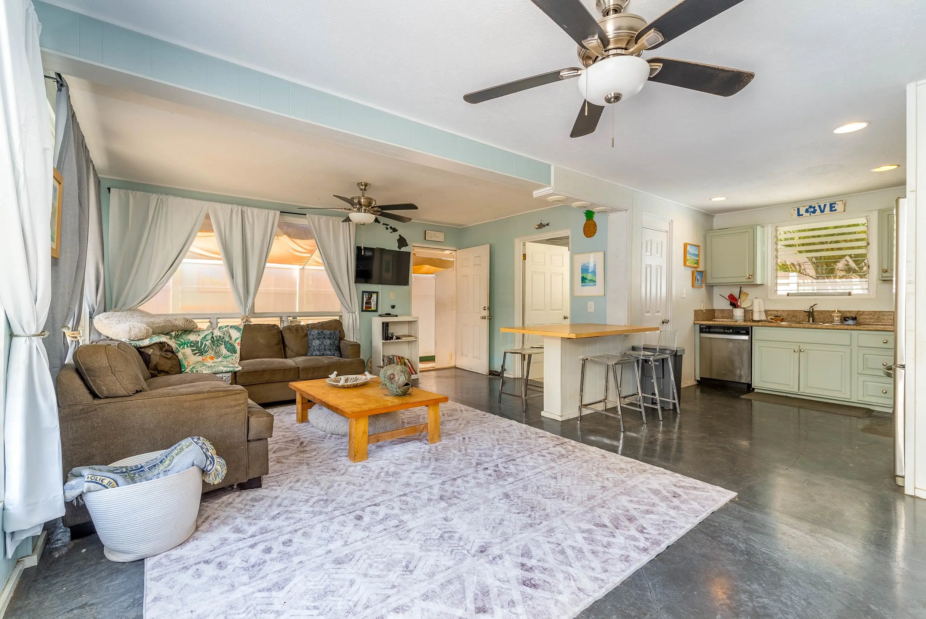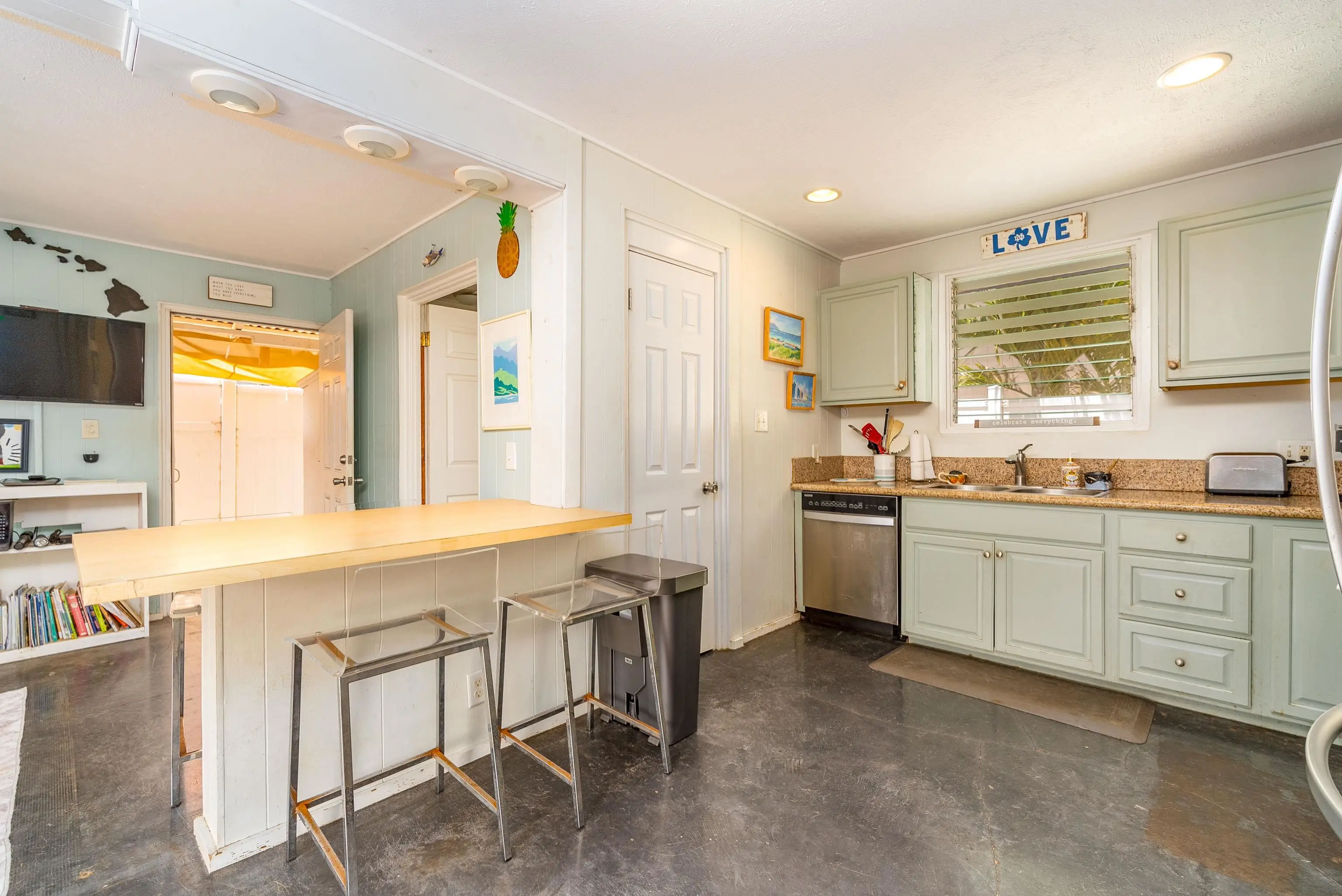 Also listed as Residential under MLS#403954. As per the Maui County tax record, the Property is zoned Commercial Mixed Use - MRA. 93 Maluhia Drive offers a charming and meticulously cared for 3-bedroom, 2-bathroom home, spanning 936 square feet in historic Wailuku. Step through the front door and be embraced by the inviting ambiance of a beach house, painted in serene ocean blues and warm Maui sun yellows. The great room, featuring beautifully refinished concrete floors, is bathed in natural light, creating a bright and spacious atmosphere. The fully-equipped kitchen boasts stainless steel appliances, custom cabinetry, and a built-in table perfect for quick breakfasts or leisurely dinners. The generously sized bedrooms are designed for comfort with ample windows that invite in cooling cross-breezes and abundant natural light, ideal for transforming into a home office or creative studio. Both bathrooms have been tastefully updated with modern fixtures. Outside, discover a distinctive outdoor shower essential for rinsing off after sandy Maui adventures, complemented by a yard suitable for a small garden, succulent collection, or convenient water equipment storage. Conveniently situated near the quaint charm of Wailuku town, a blend of small-town American allure and local Hawaiian culture, this home is close to restaurants, delightful coffee shops, grocery stores, and shopping. Additionally, its proximity to the government center makes it a hub for Maui County’s business, legal, and medical services. Wailuku's location is just a short drive from Kahului with easy access to all the conveniences the area has to offer. Schedule a showing with your favorite Realtor today!