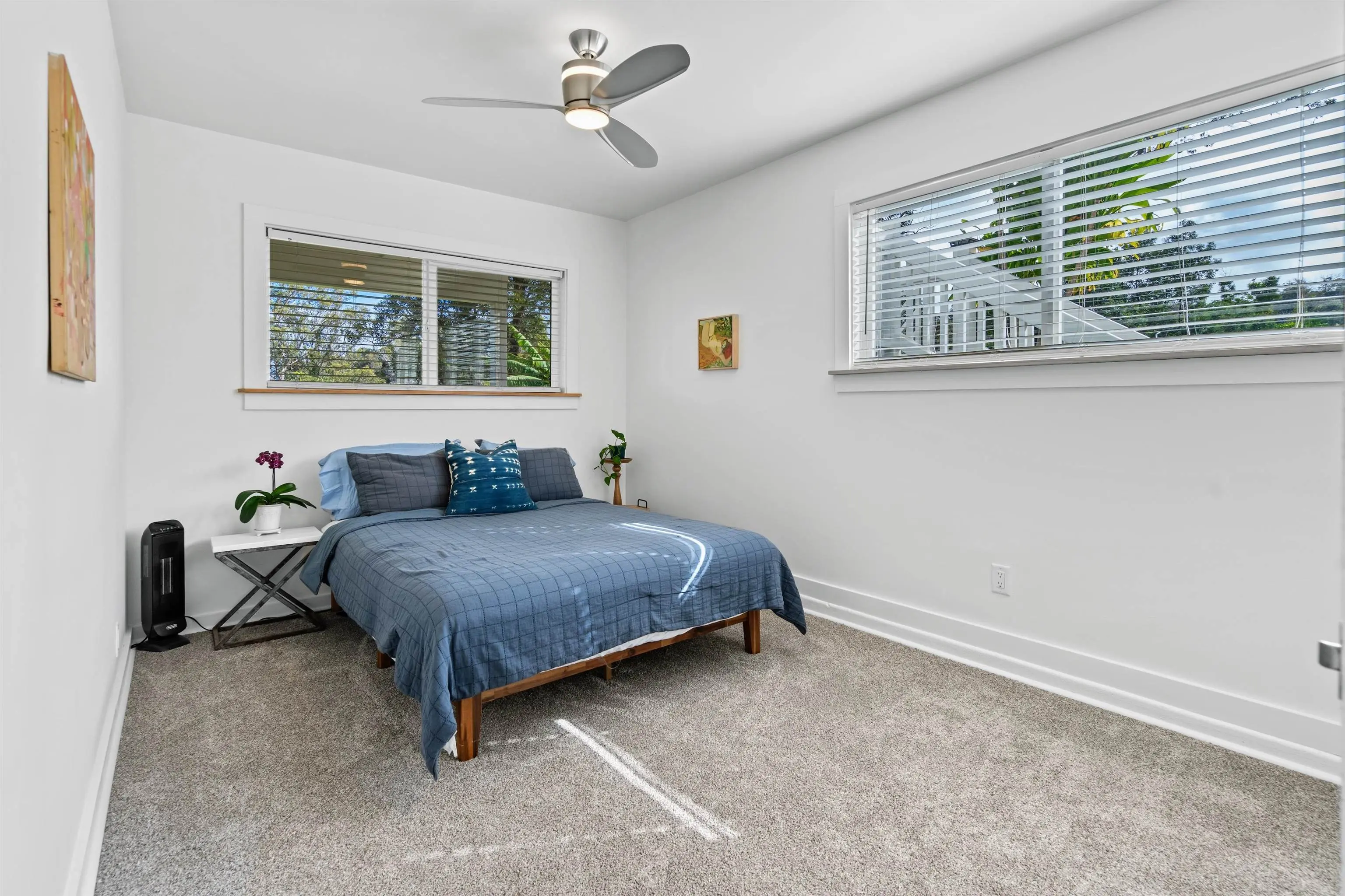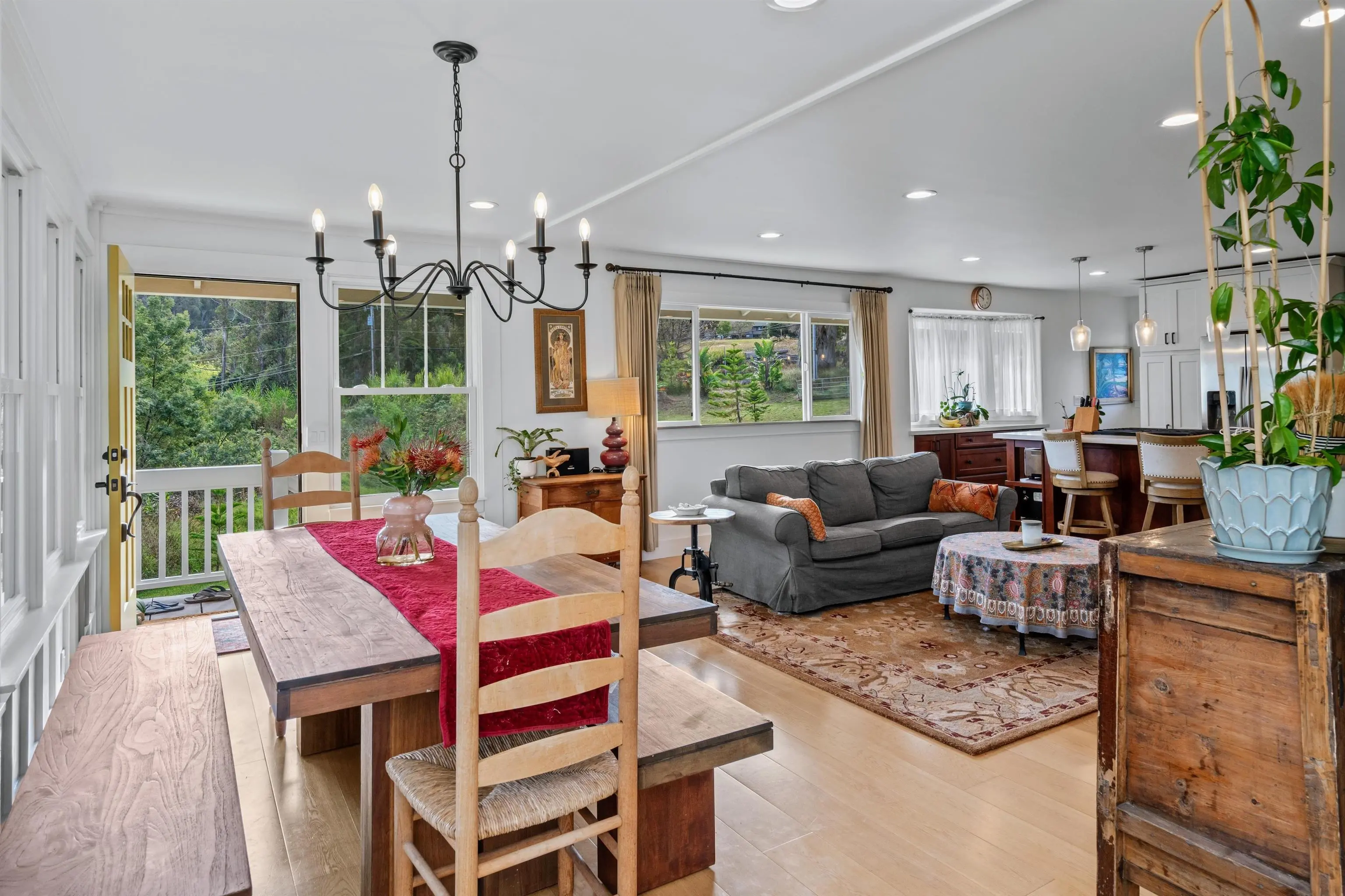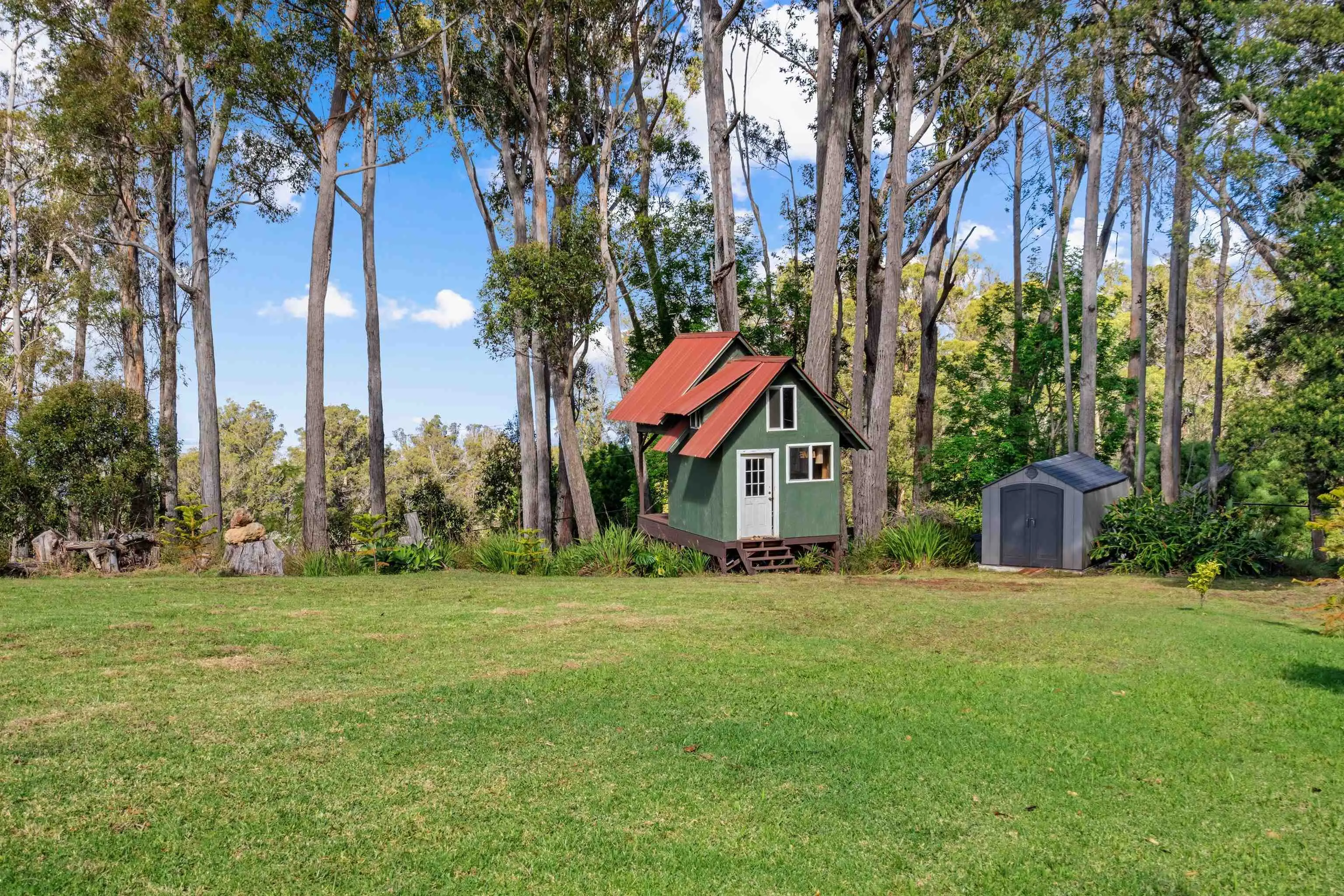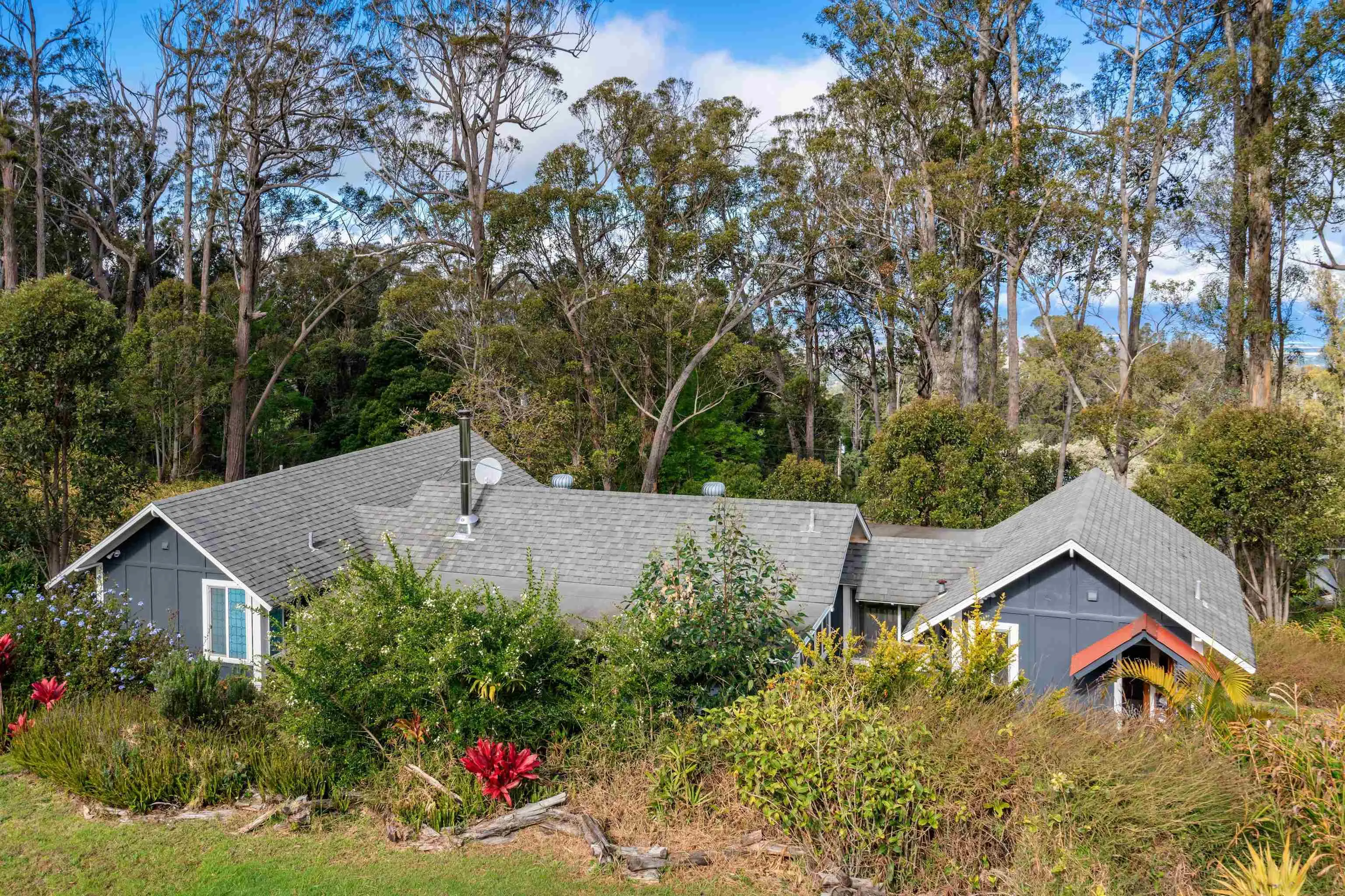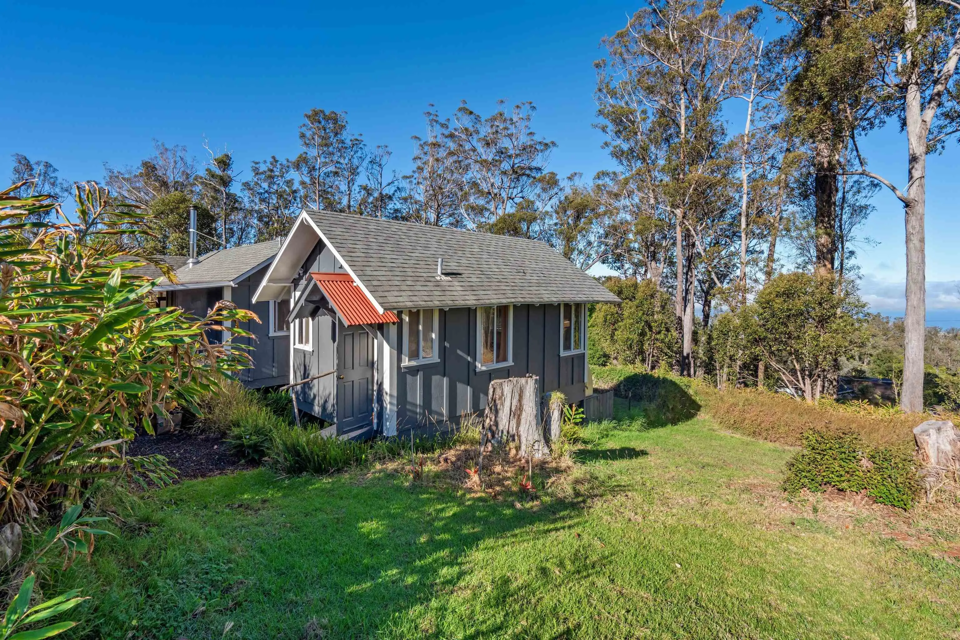 Beautifully contemporary remodeled large home with room(s) for everyone. Upstairs is the main suite, roomy and spacious with a stargazing, Olinda ocean view lanai deck that connects to the expansive comfy living area. Ultra functional kitchen and inviting dining for gathering in the way we live in 2025. The main suite is adjacent to an office or nursery room. Downstairs there are bedrooms surrounding and centered by the den/game area, plus yoga/art/craft room affectionately called “the nest” and laundry room. Furnishings could be included. Both the inside & outside of this property is expansive and ready for the fun. There is the quintessential 2Br/2Ba open design cottage, with fenced yard, including the oh’s and aw’s and fantastic tenants. The grounds have trails for biking/walking and a storage unit and a multilevel tree house, the coolest one you will find, which includes a counter-balance ladder hoist. Enjoy listening to the birds from this peaceful & tranquil Olinda location away from neighboring structures focused on closer proximity to schools, sports and activities. Very well maintained, recently remodeled on 2+ outside-ie fun acres. Enjoy the cooler summers and perfect winter weather. The large trees were removed to create a light bright sweet environment and the trails. Make this your fantastic place to call home. To view Matterport for the cottage, go to https://my.matterport.com/show/?m=nDoAwSnBSyB.
