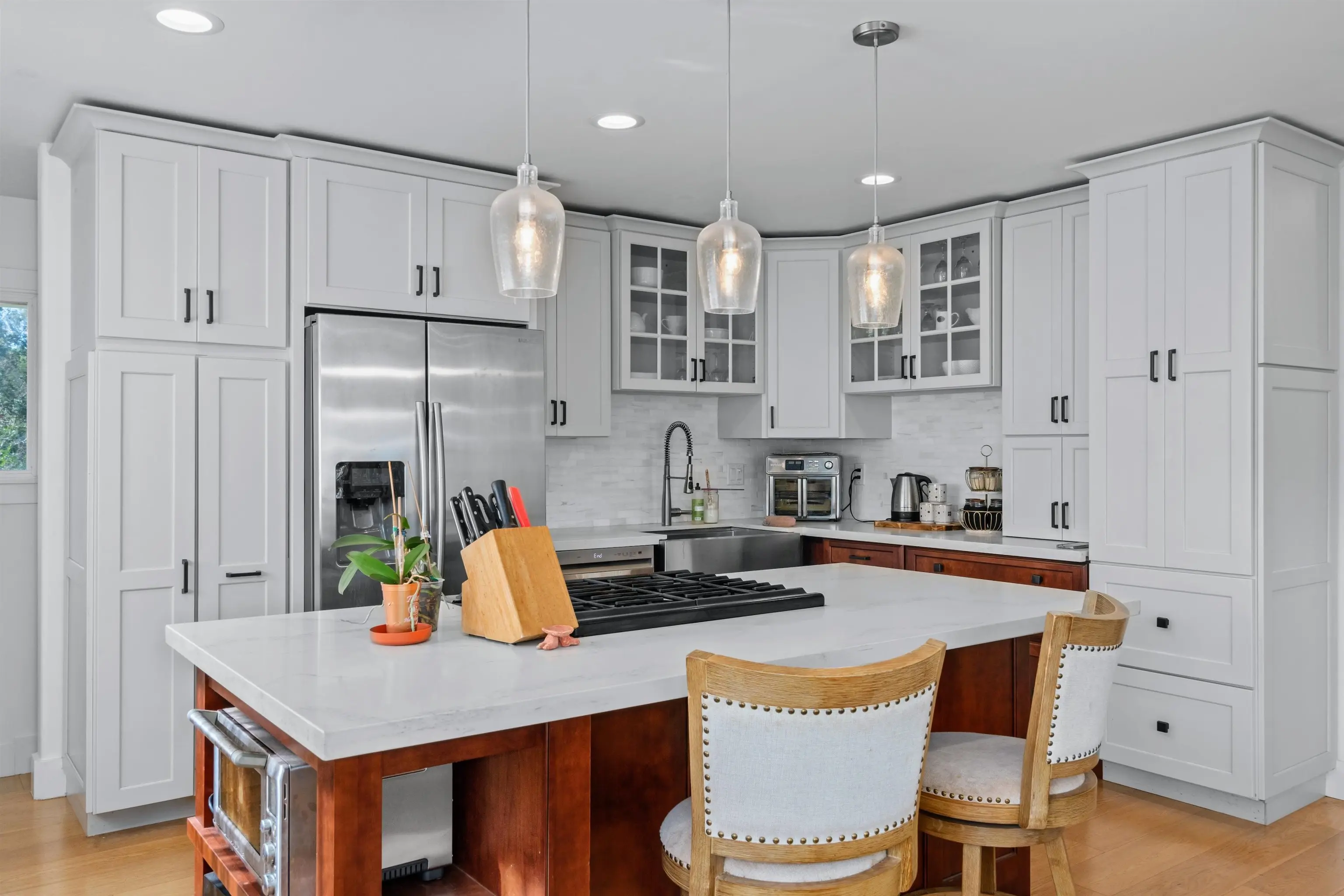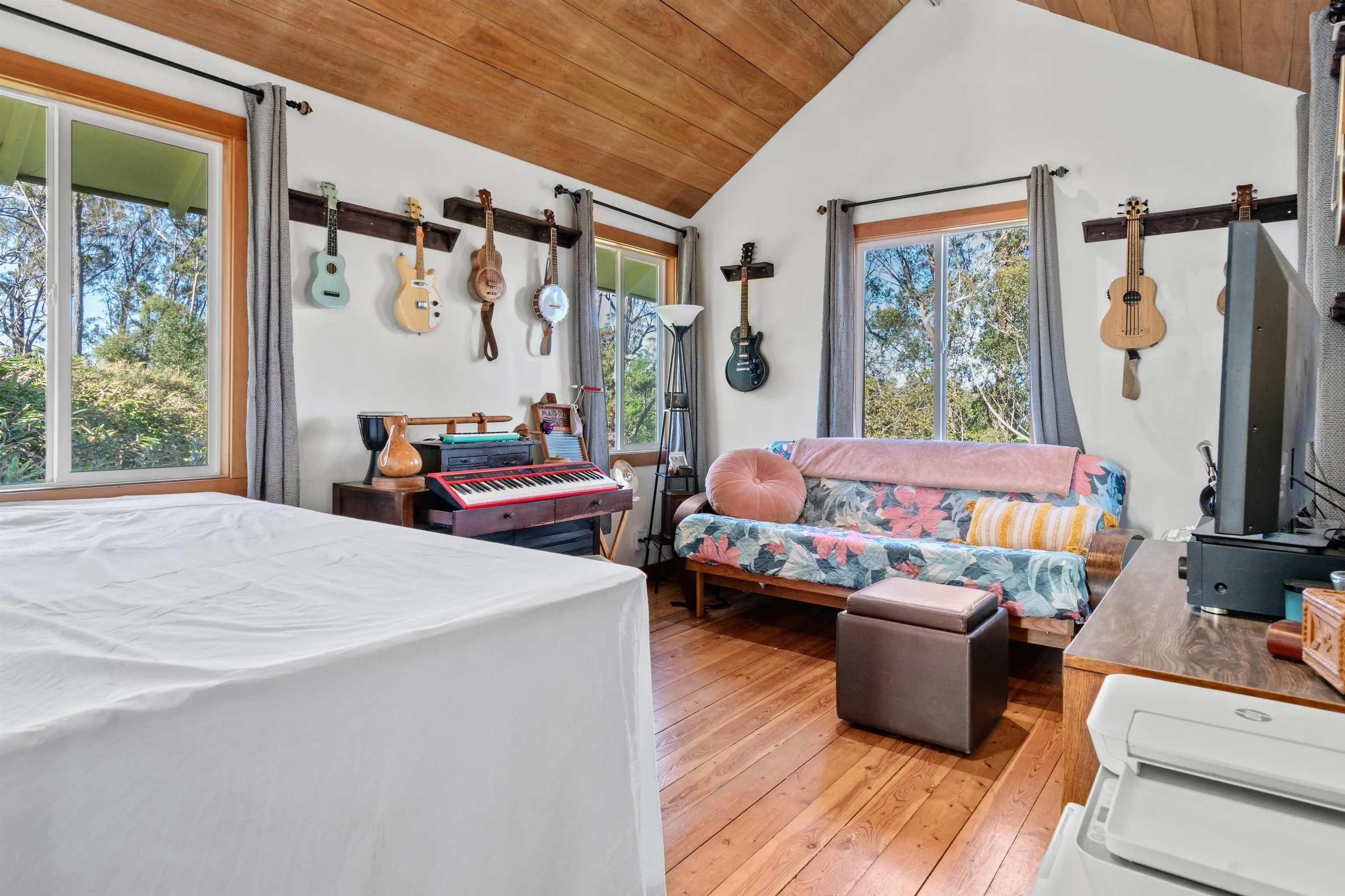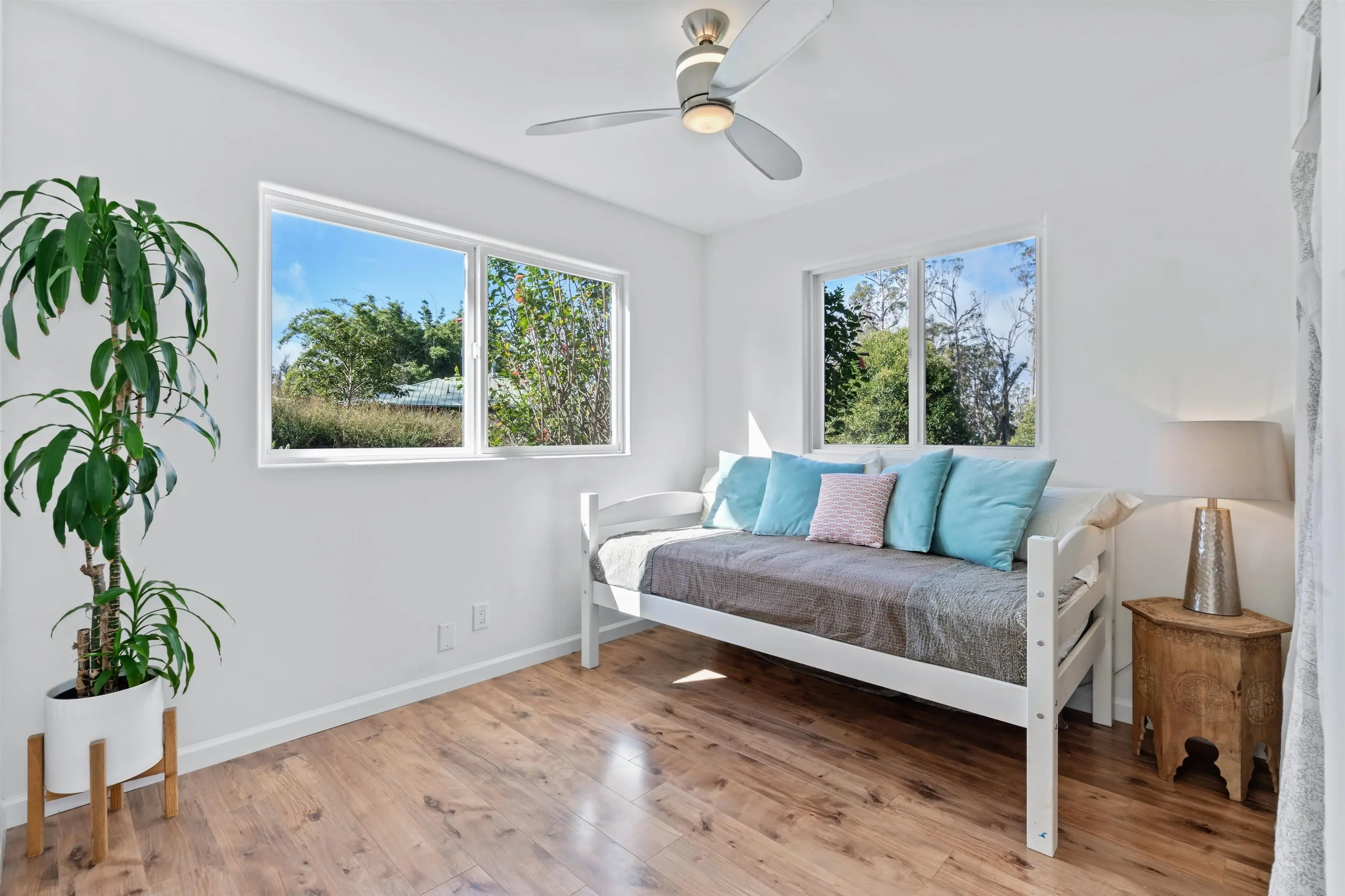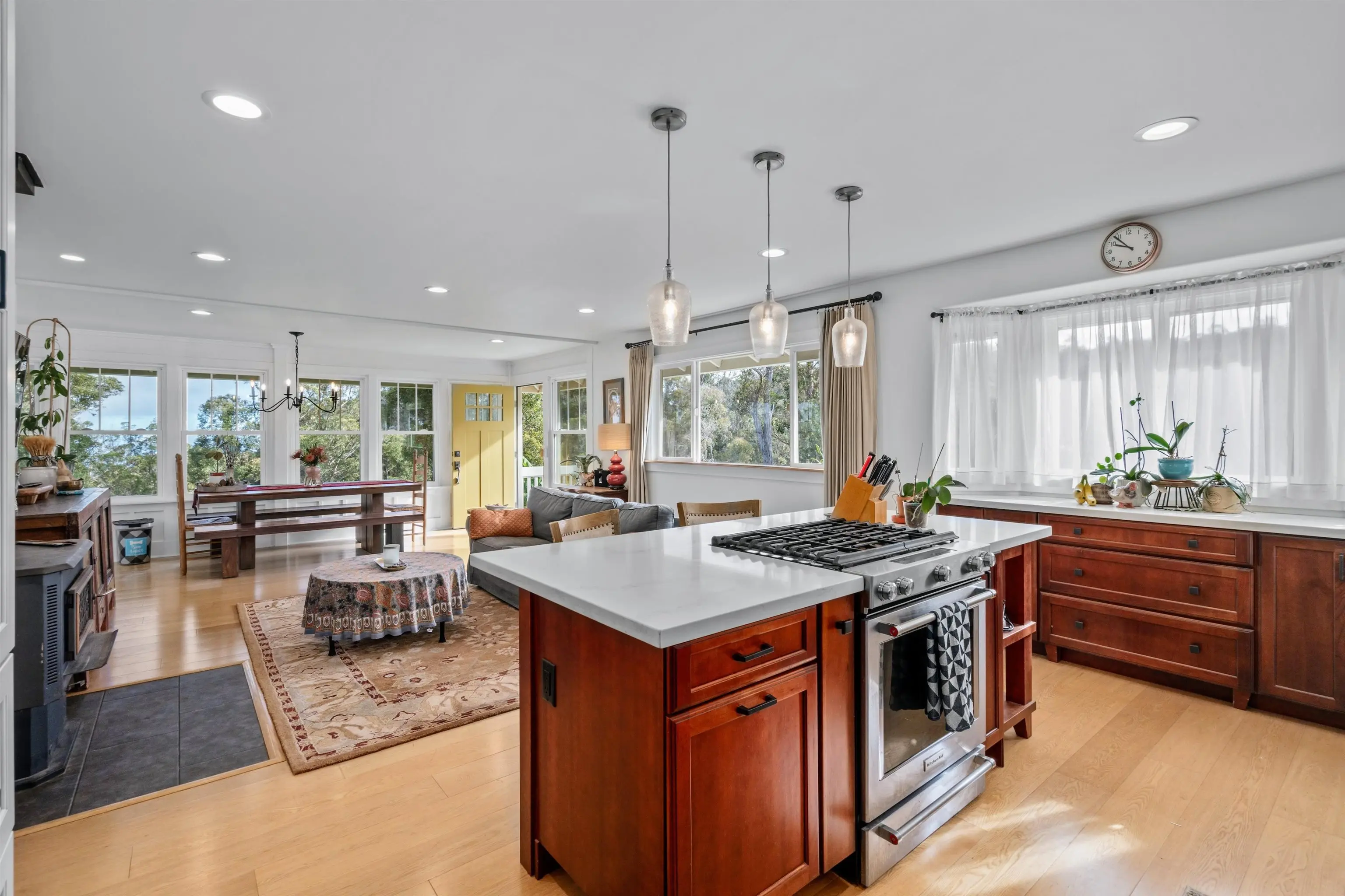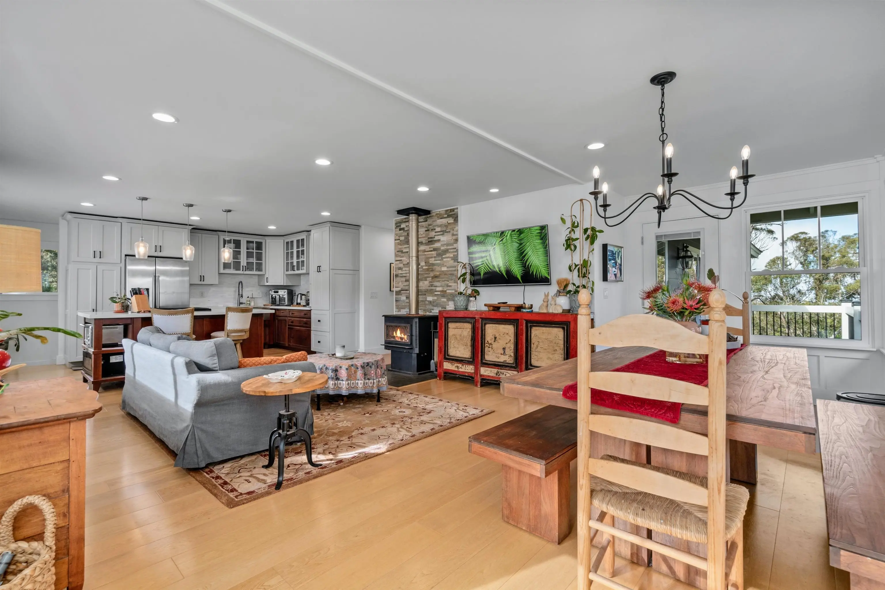 Beautifully contemporary remodeled large home with room(s) for everyone. Upstairs is the main suite, roomy and spacious with a stargazing, Olinda ocean view lanai deck that connects to the expansive comfy living area. Ultra functional kitchen and inviting dining for gathering in the way we live in 2025. The main suite is adjacent to an office or nursery room. Downstairs there are bedrooms surrounding and centered by the den/game area, plus yoga/art/craft room affectionately called “the nest” and laundry room. Furnishings could be included. Both the inside & outside of this property is expansive and ready for the fun. There is the quintessential 2Br/2Ba open design cottage, with fenced yard, including the oh’s and aw’s and fantastic tenants. The grounds have trails for biking/walking and a storage unit and a multilevel tree house, the coolest one you will find, which includes a counter-balance ladder hoist. Enjoy listening to the birds from this peaceful & tranquil Olinda location away from neighboring structures focused on closer proximity to schools, sports and activities. Very well maintained, recently remodeled on 2+ outside-ie fun acres. Enjoy the cooler summers and perfect winter weather. The large trees were removed to create a light bright sweet environment and the trails. Make this your fantastic place to call home. To view Matterport for the cottage, go to https://my.matterport.com/show/?m=nDoAwSnBSyB.