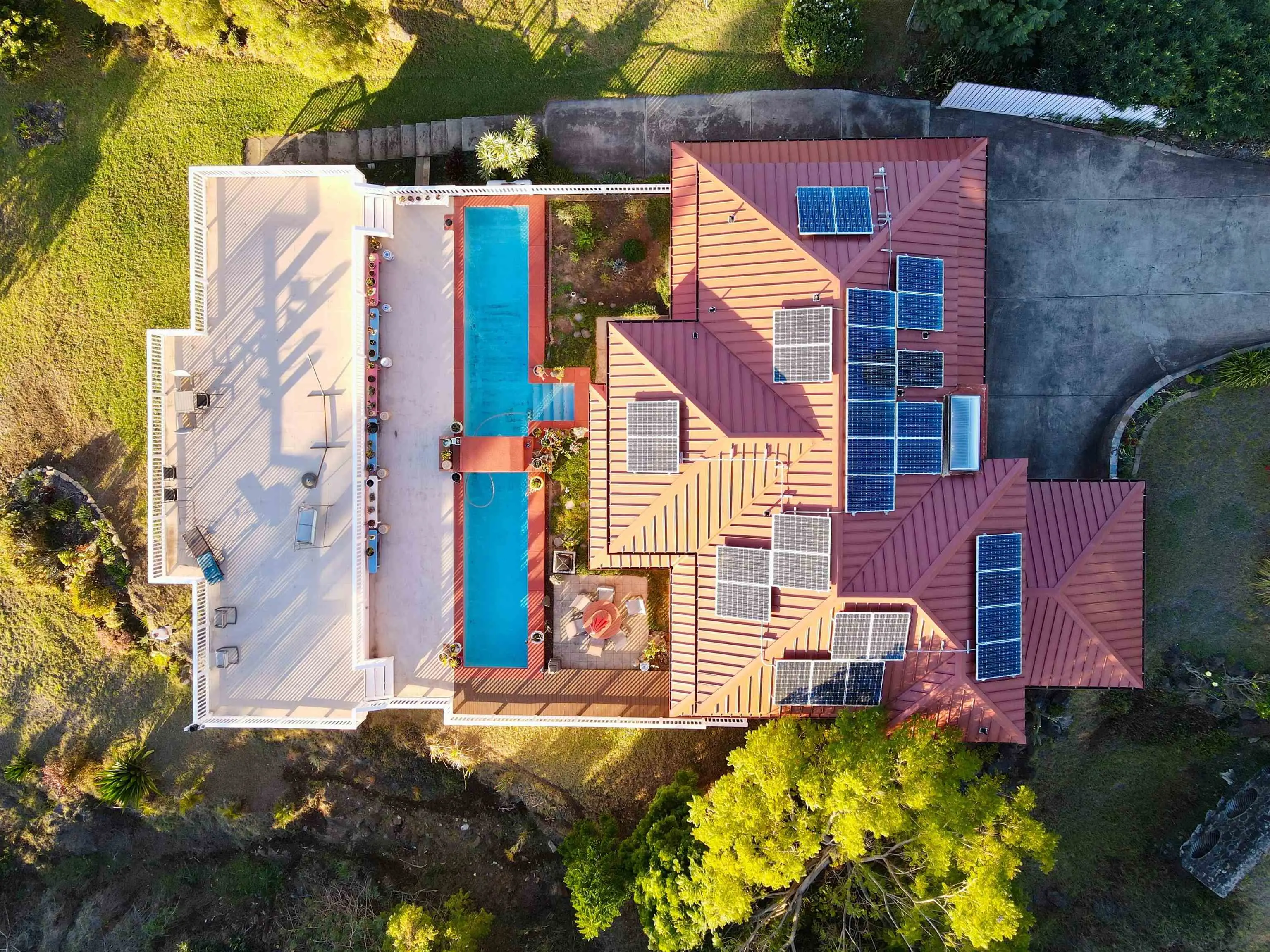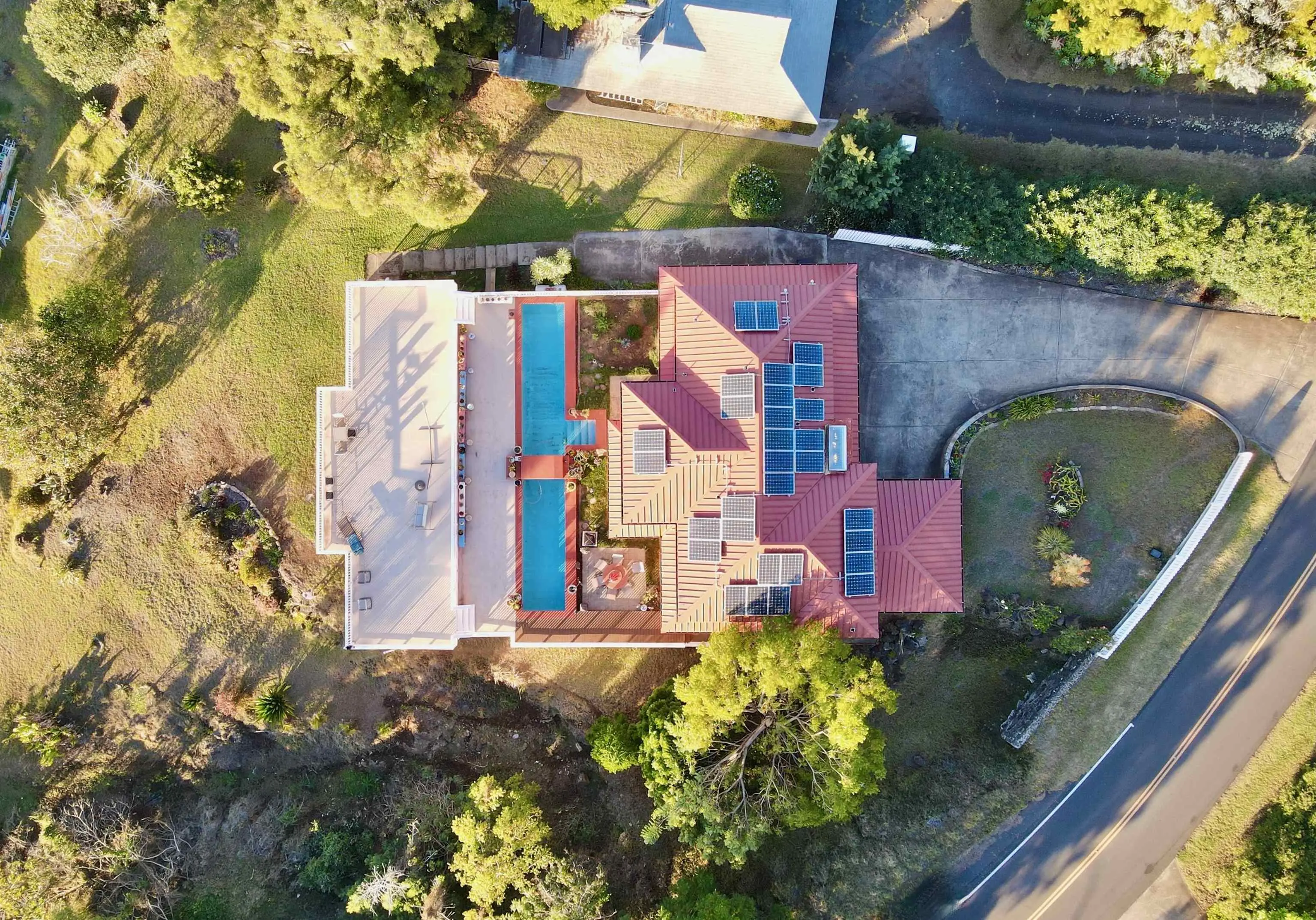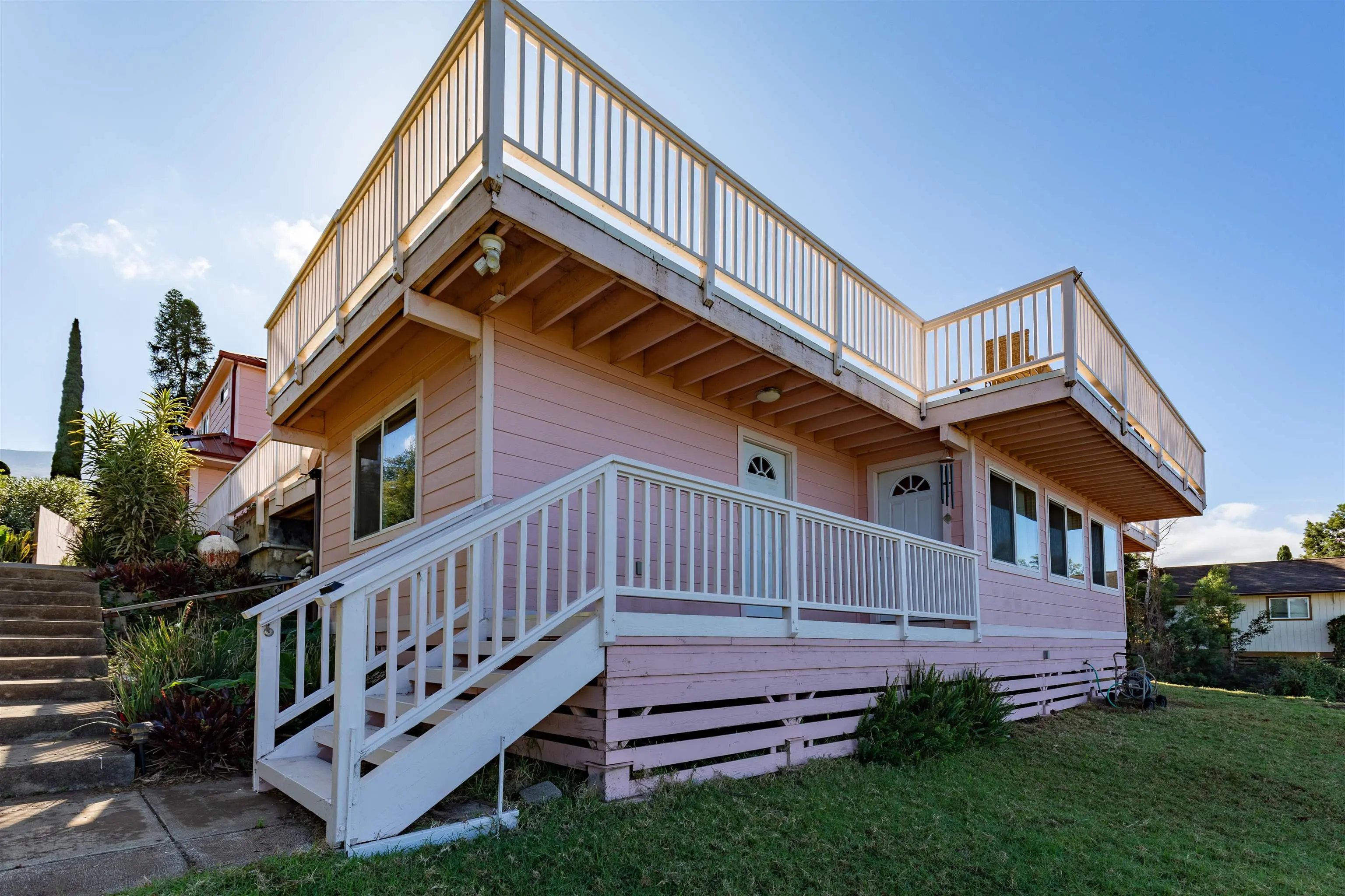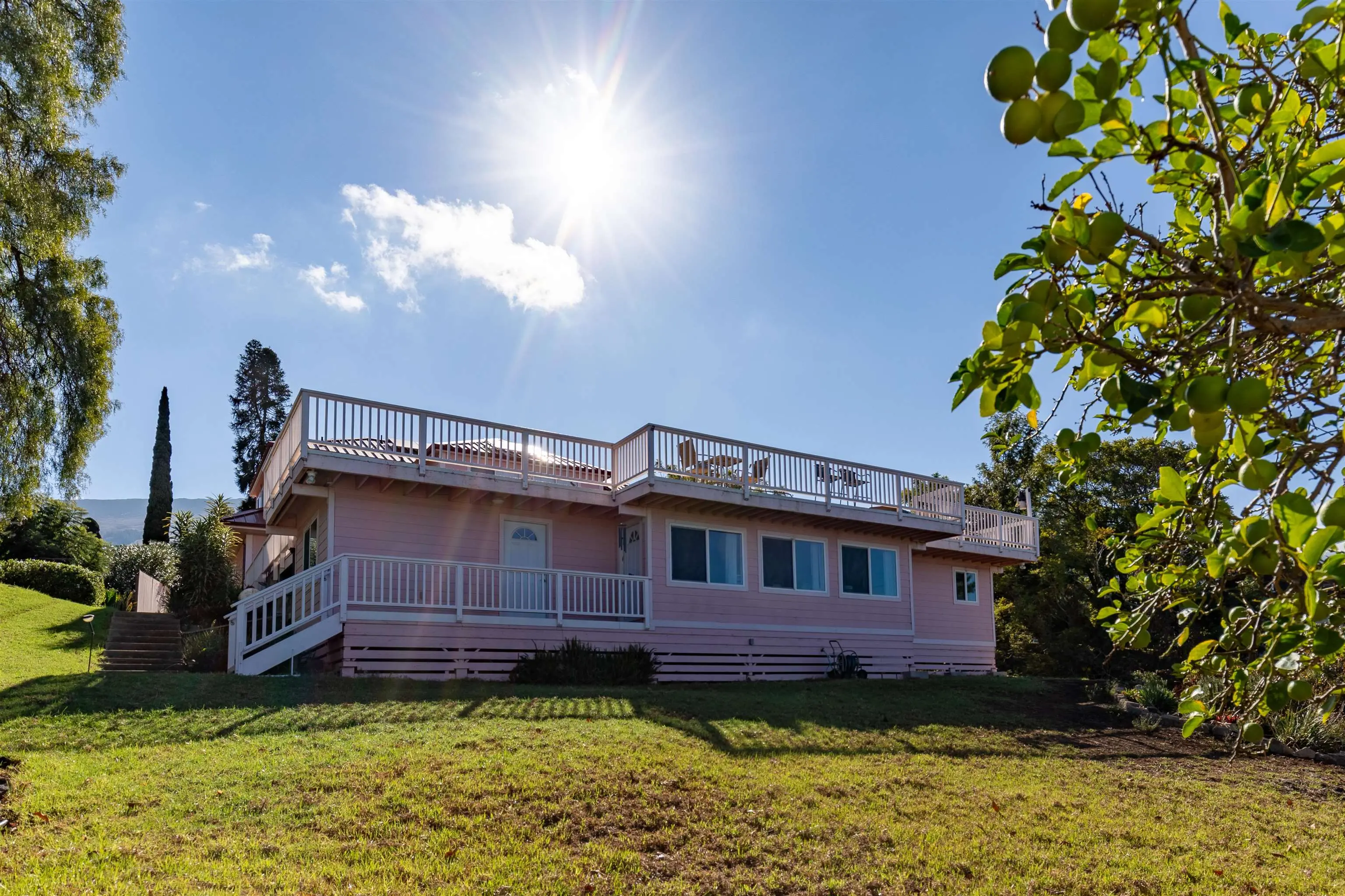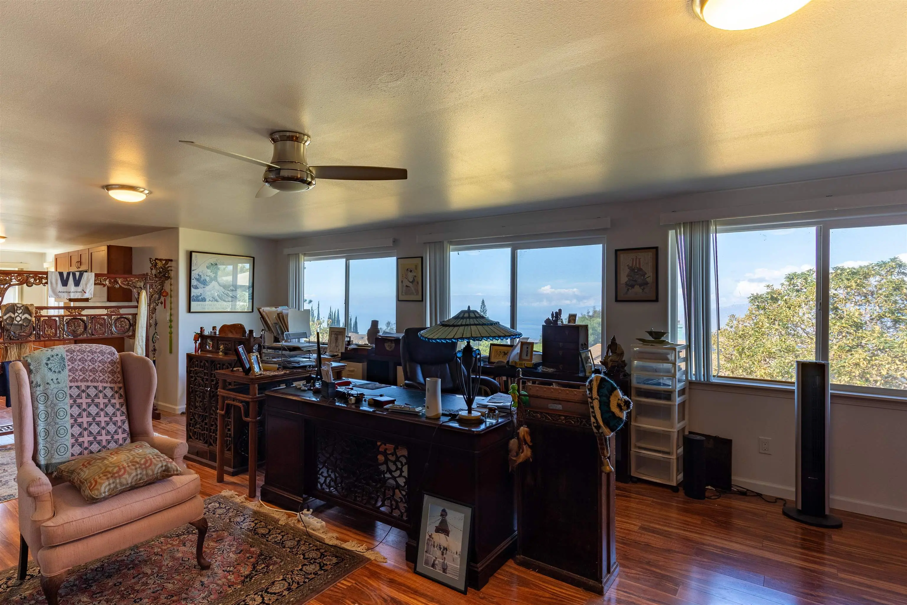 If ever there were a Swiss Army knife of a house, this is it! 39 Kamila Street might be Kula Highlandsâ most flexible property. The main house has an upstairs world, a downstairs world, and a gunite lap pool with a view that dazzles. Just beyond the tranquil blue waters of the pool is a 1600 square-foot deck that not only allows you and your 50 closest friends to enjoy the spectacular sunsets, but it cleverly hides a fully permitted 932 square-foot office and storage room with its own bathroom and its own septic system. Even this office in its lower elevation, enjoys an incredible view. The main house has a spacious and bright open beam upstairs world with remodeled bathrooms and kitchen. The downstairs world has a wet bar area, spacious family room and a large bathroom and bedroom overlooking the pool. The metal roof is flanked with a solar photovoltaic system, and there are two Tesla power walls in the garage to keep your electric life uninterrupted.(26.4 KwH!) Ask your realtor about the legally permitted accessory dwelling musical chairs situation. Priced below recent appraisal.
