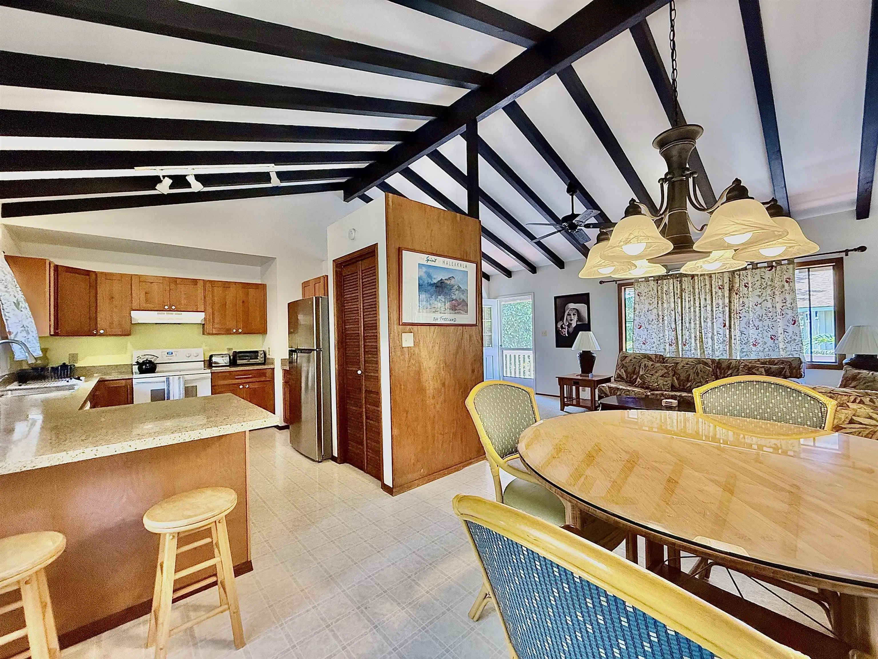 Peaceful. Private. Full of potential. Tucked away in a quiet cul-de-sac in Makawao, 254 Kapuahi Street offers the perfect blend of serene Upcountry living while keeping you close to all the essentials. Sitting on over half an acre, this unique estate features two spacious dwellings—a main house with a beautifully revamped half-wrapped deck and a separate cottage equipped with multiple bonuses! Both homes feature high vaulted and open beam ceilings and are surrounded by mature trees and lush greenery, making the property feel like your own private botanical oasis. Step inside, and you’ll find renovated kitchens with sleek quartz countertops in the main dwelling and granite in the separate cottage, adding a modern touch to the home's warm and inviting charm. The flooring throughout is a mix of carpet, tile, vinyl, and even bamboo, creating a unique character that makes each space feel special. Beyond the beauty of the property itself, the location is unbeatable. Enjoy easy access to Haleakala Highway, connecting you to the best of Upcountry farms, shopping, Pukalani’s County swimming pool, and nearby beaches. The property is also conveniently located near the airport and Hana Highway, making island adventures just a short drive away. But what truly sets this property apart is its versatility. Whether you're looking for multi-generational living, rental income potential, or extra space for guests, the possibilities here are endless. Live in one and rent the other or create a personal retreat—this is Upcountry living at its finest. Property is on cesspool.