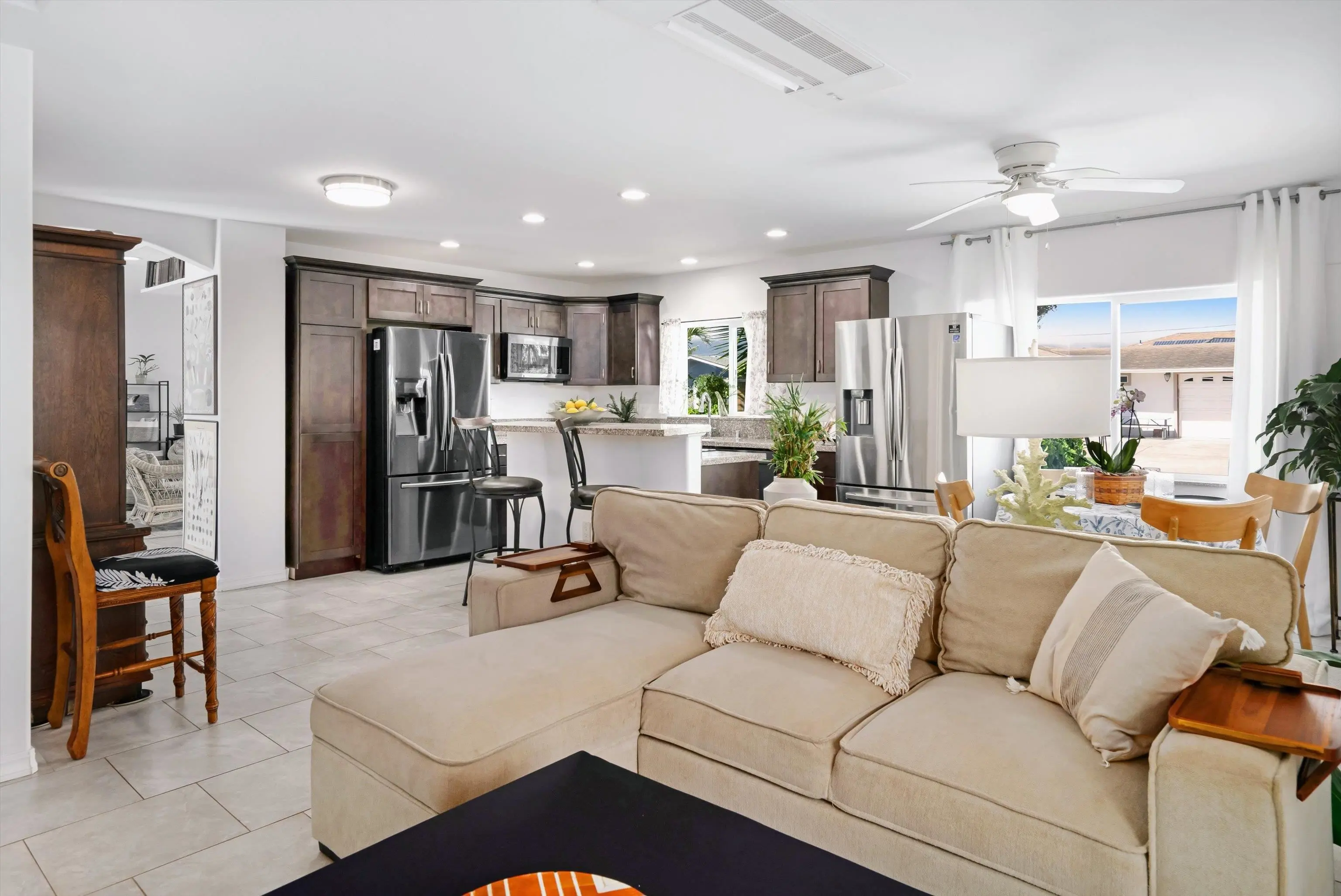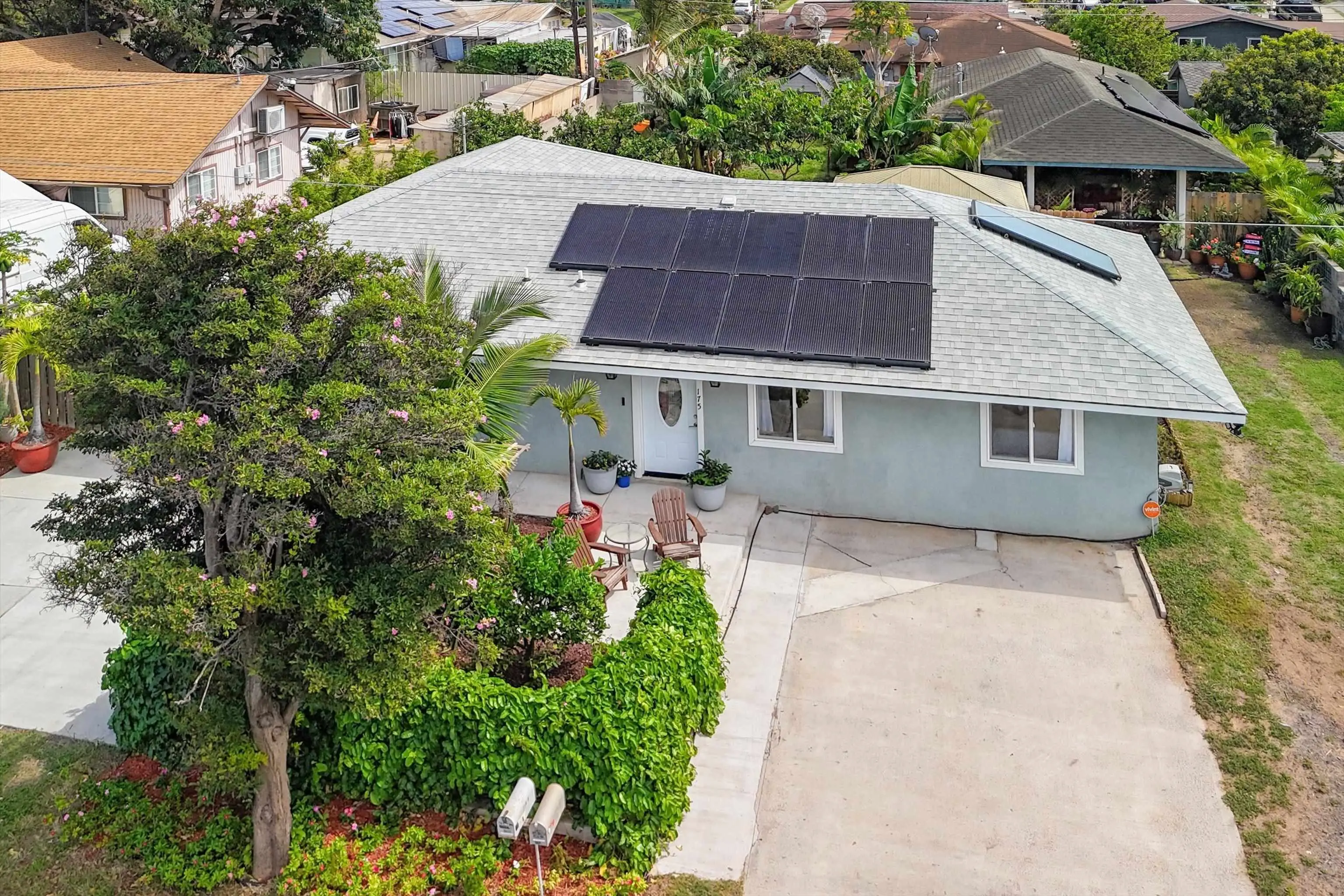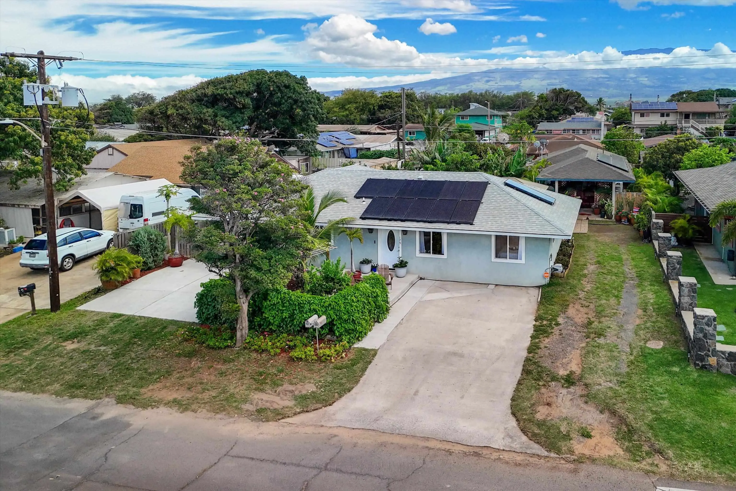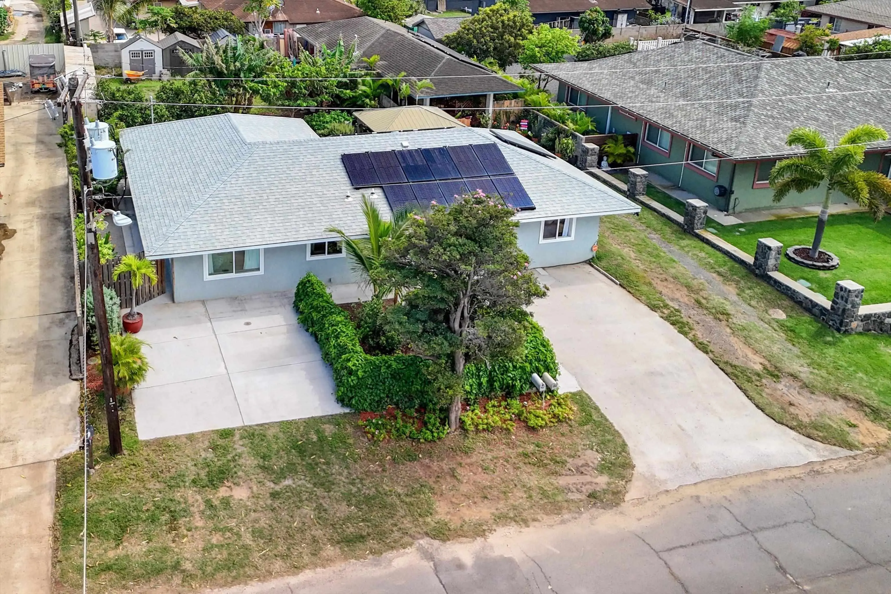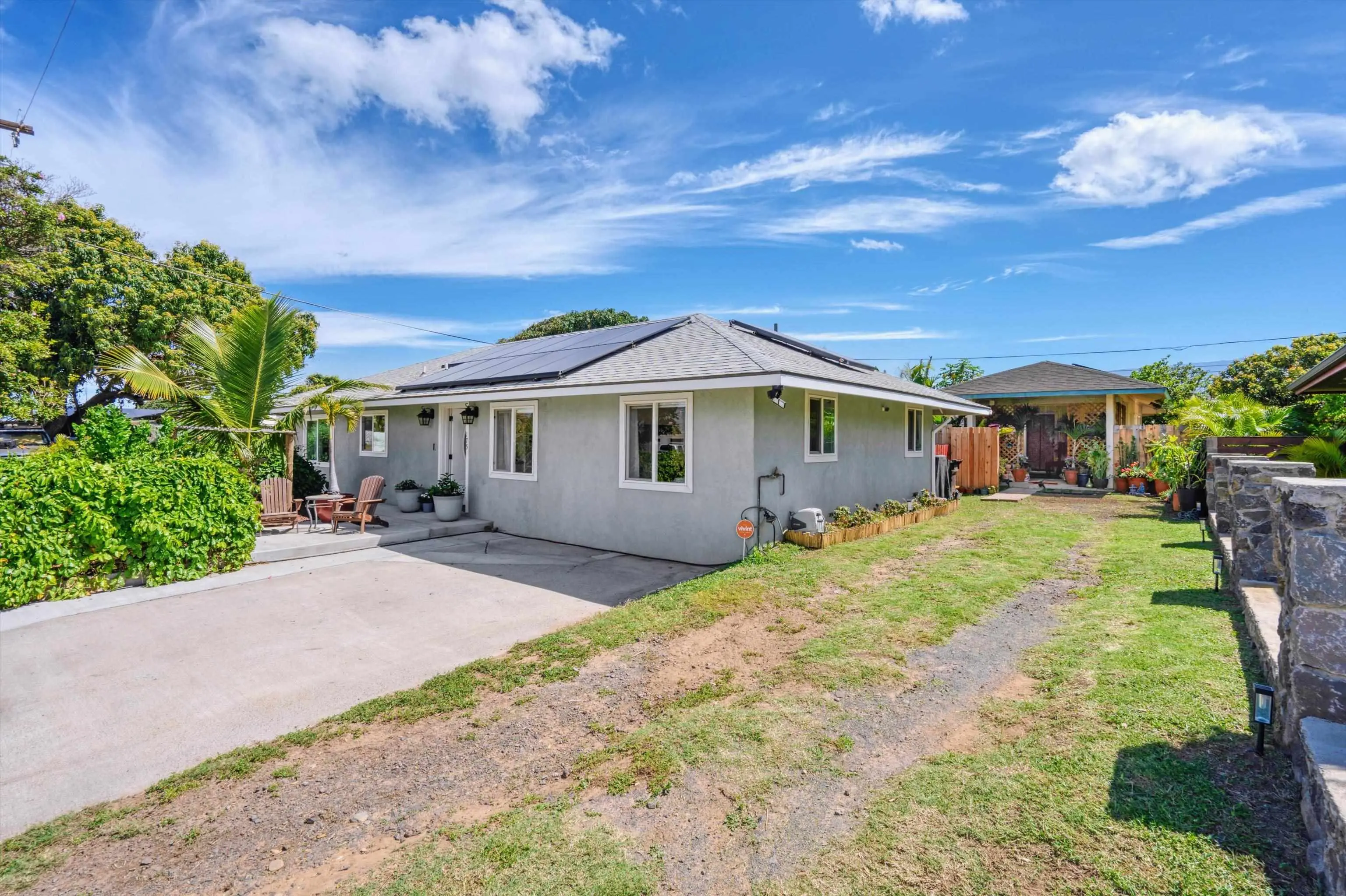 Must seeâa true gem in the 4th Increment close to Maui High School and Kahului School. This is NOT a drive by! This spacious, bright, single-level 3 bed/2 bath home was rebuilt from the foundation-up in 2018. The main house offers a flexible floor plan that can function as separate living spaces (a 2/1, approx. 800 sf and a 1/1 of approx. 670sf. It shows As-New and is conveniently close to malls, shops, restaurants, hospital and medical offices, as well as minutes from County, State, and law offices. The property is located on a quiet, uncluttered street with no HOA or CC&Rs. Tile floors throughout, 5 split A/C units and the leased PV panels (and two backup batteries) keep the utility bill low. The kitchen features granite countertops and black stainless-steel appliances. A private front-yard with fruit trees surrounded by passion fruit vines and a cute sitting area with spectacular West Maui Mountain views. The rear lanai with an al fresco dining area under a gazebo opens onto the oasis-like landscaping with more citrus, banana, young fig trees and a herb garden. The main house boasts 4 off-street parking spots. The very private ohana with 9-foot ceilings also benefits from PV panels and a backup battery. The ohana carport is a lovely and unique bonus living space also created by the tenant. Both Sellers hold an active Hawaii Real Estate License, one of whom is the Listing Agent. The ohana has its own dedicated parking spaces.