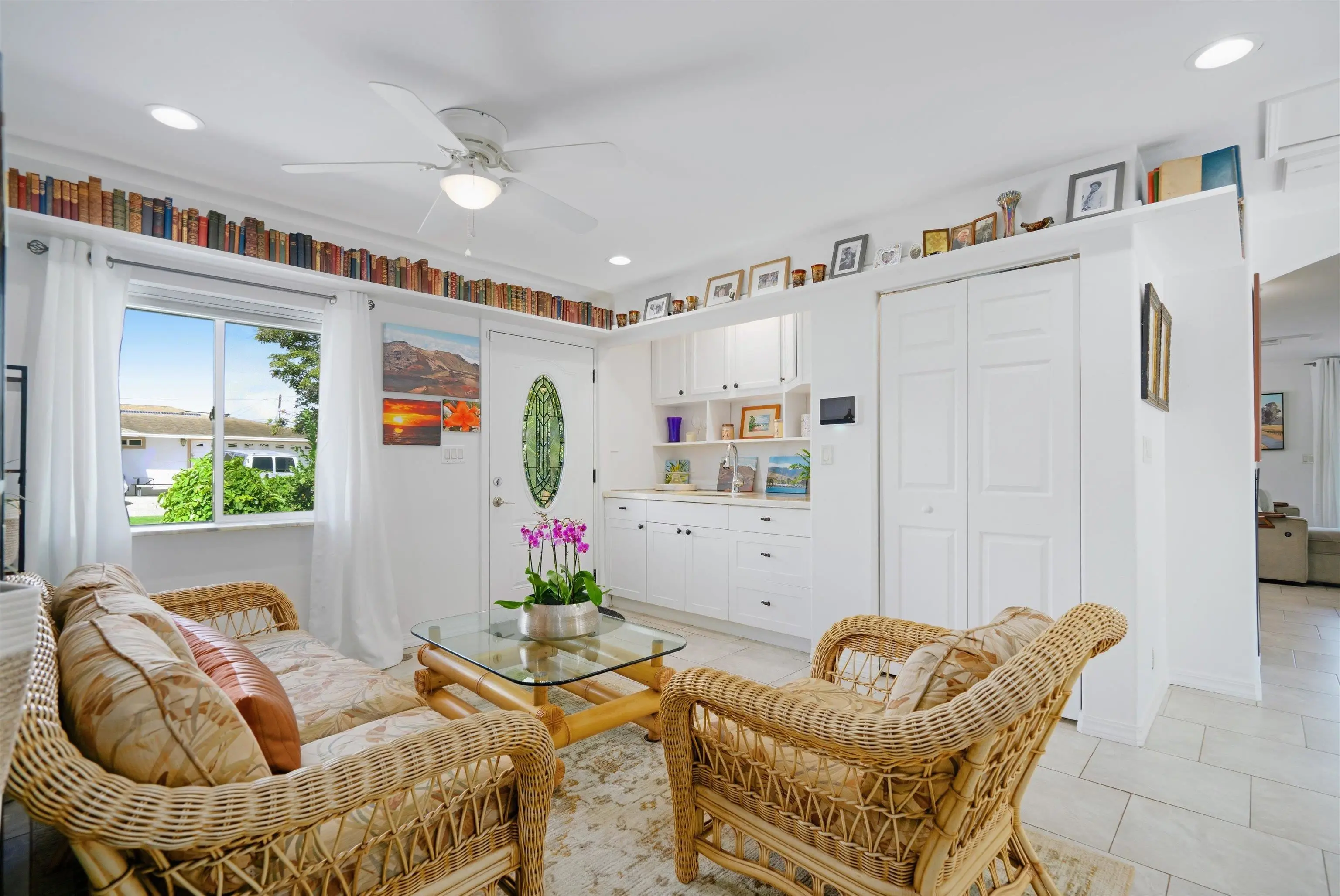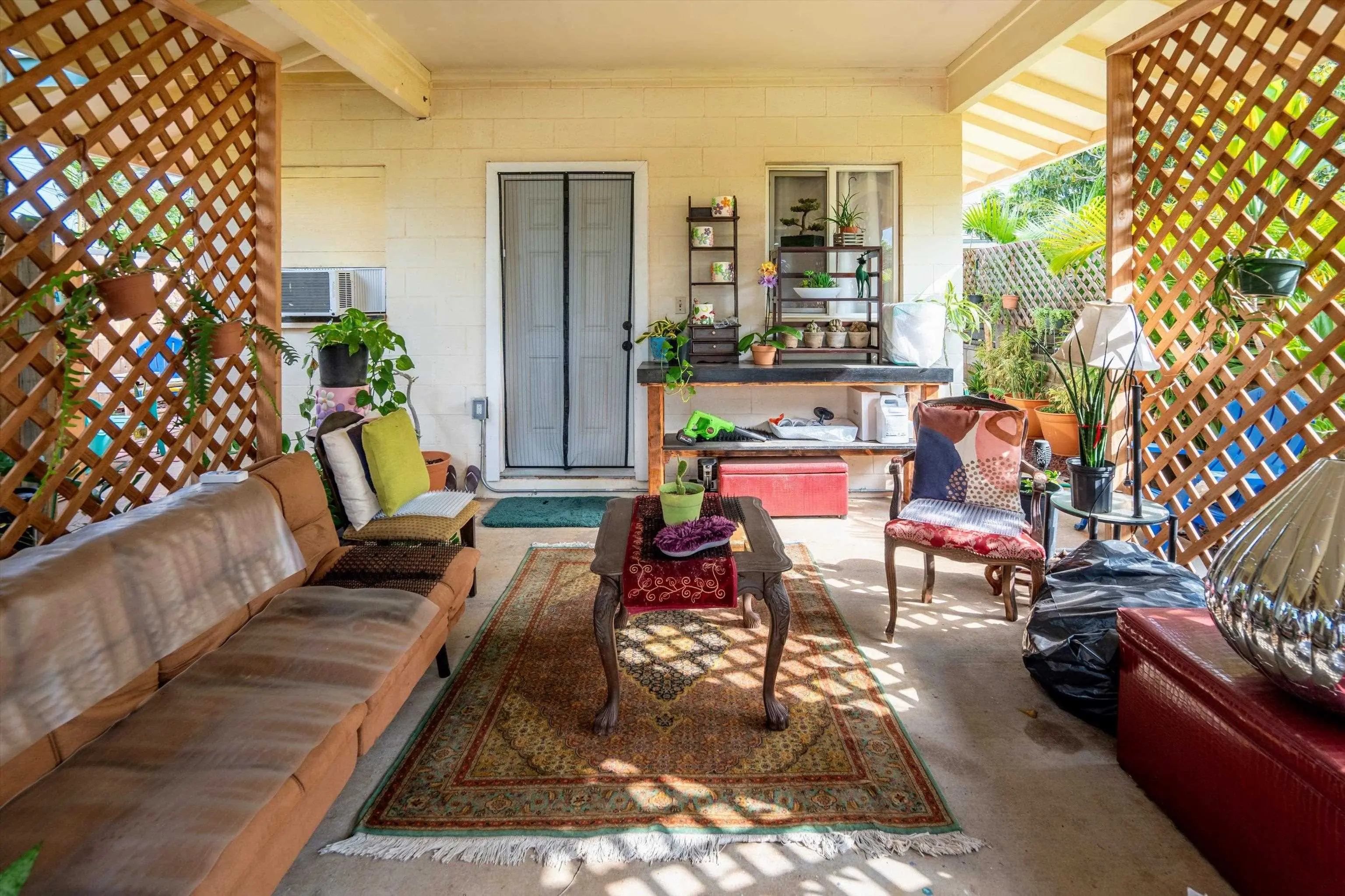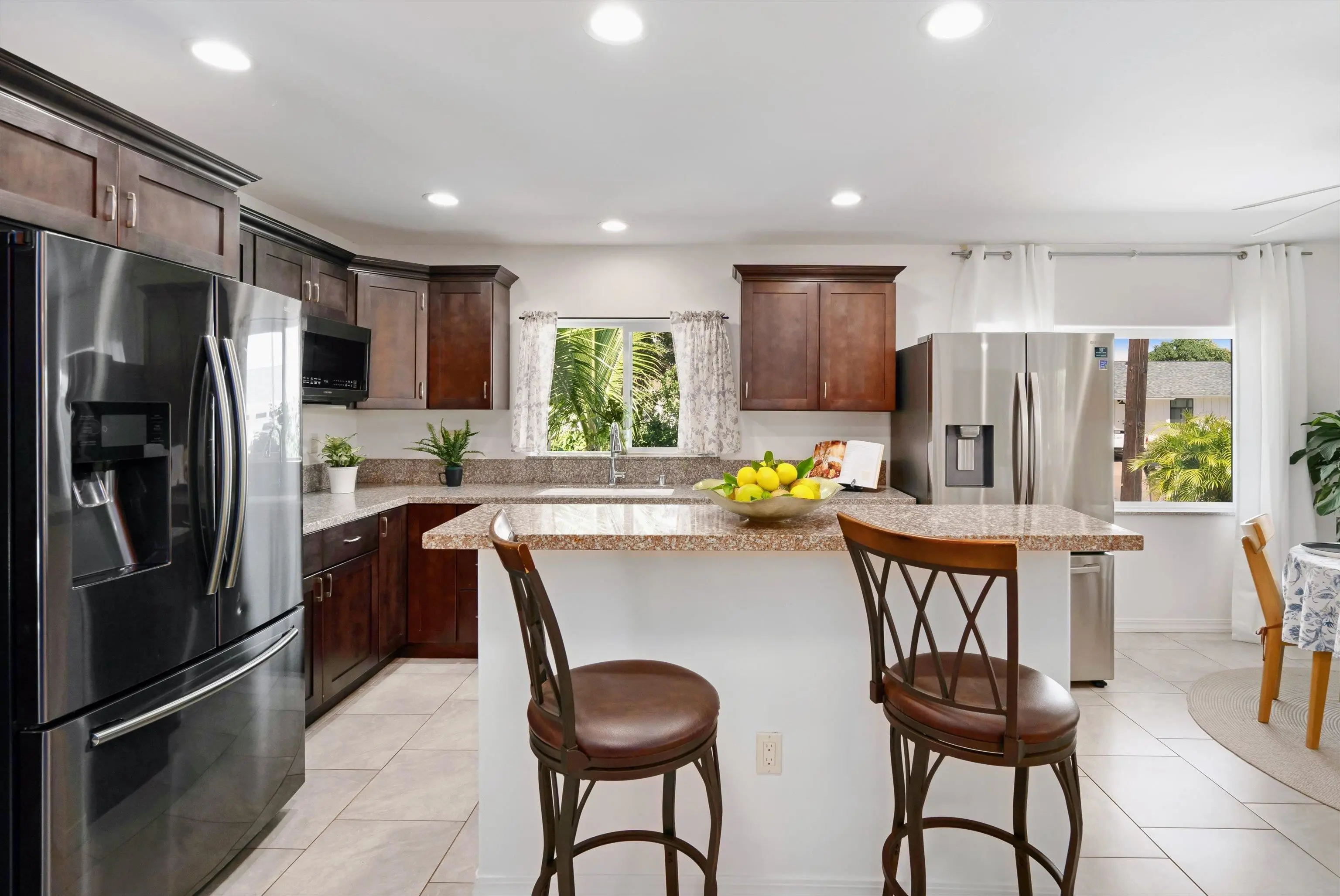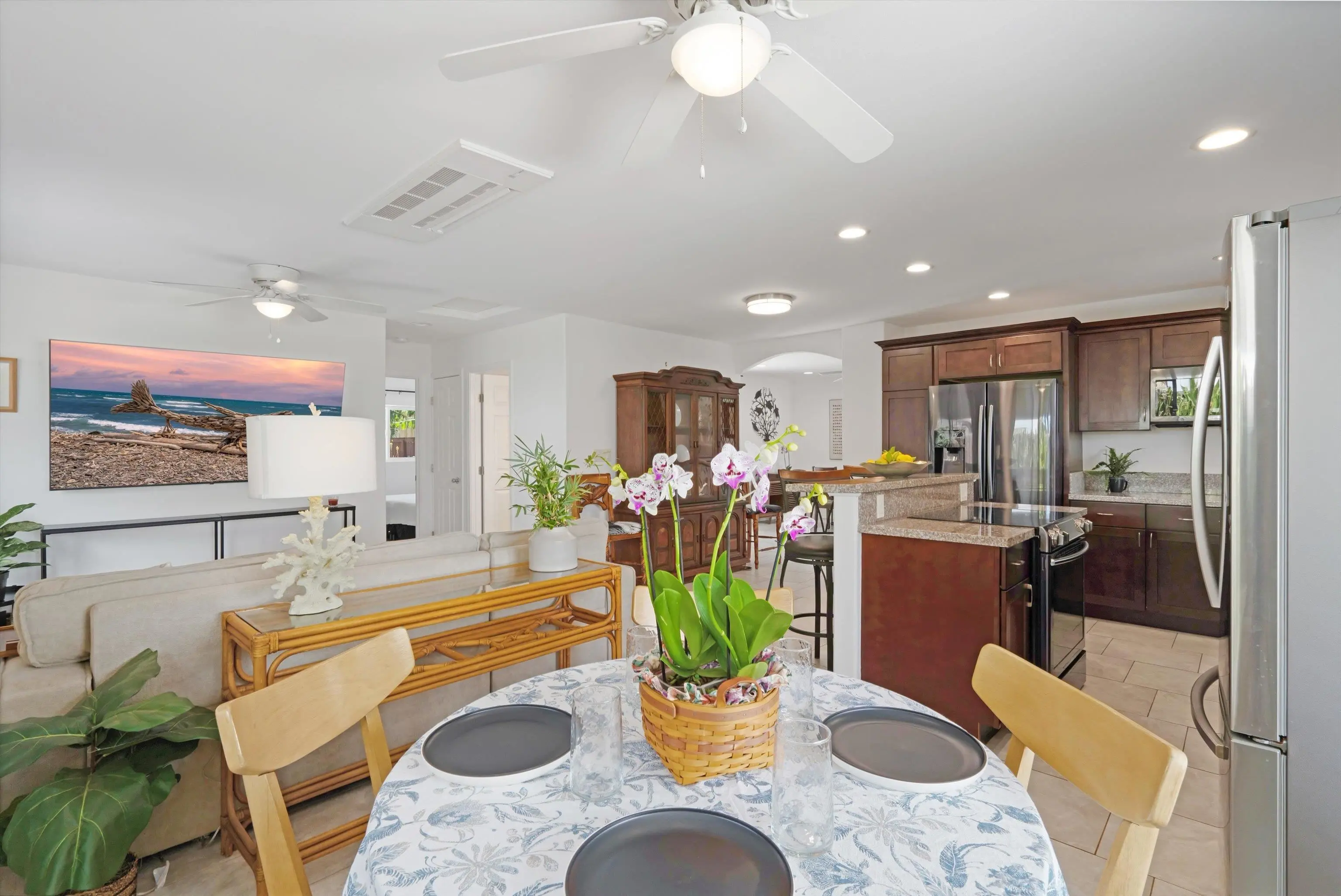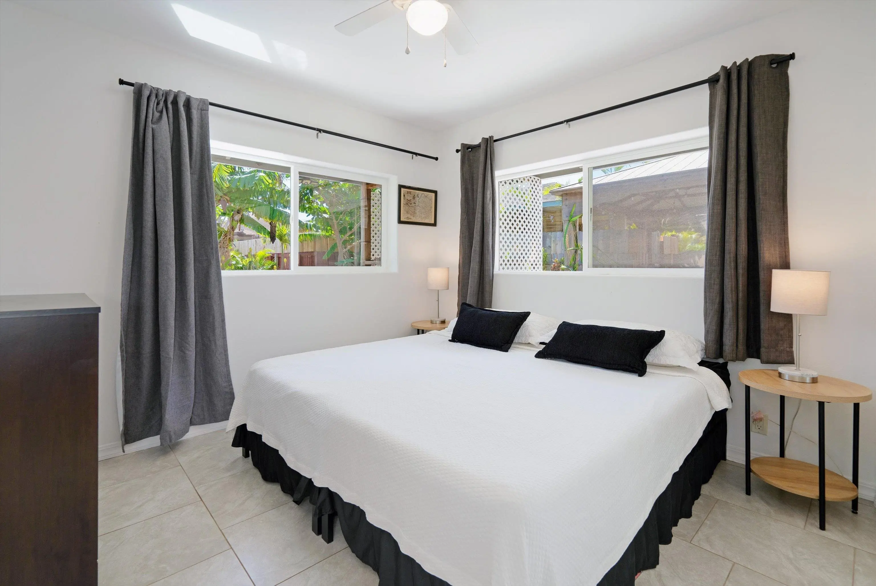 Must seeâa true gem in the 4th Increment close to Maui High School and Kahului School. This is NOT a drive by! This spacious, bright, single-level 3 bed/2 bath home was rebuilt from the foundation-up in 2018. The main house offers a flexible floor plan that can function as separate living spaces (a 2/1, approx. 800 sf and a 1/1 of approx. 670sf. It shows As-New and is conveniently close to malls, shops, restaurants, hospital and medical offices, as well as minutes from County, State, and law offices. The property is located on a quiet, uncluttered street with no HOA or CC&Rs. Tile floors throughout, 5 split A/C units and the leased PV panels (and two backup batteries) keep the utility bill low. The kitchen features granite countertops and black stainless-steel appliances. A private front-yard with fruit trees surrounded by passion fruit vines and a cute sitting area with spectacular West Maui Mountain views. The rear lanai with an al fresco dining area under a gazebo opens onto the oasis-like landscaping with more citrus, banana, young fig trees and a herb garden. The main house boasts 4 off-street parking spots. The very private ohana with 9-foot ceilings also benefits from PV panels and a backup battery. The ohana carport is a lovely and unique bonus living space also created by the tenant. Both Sellers hold an active Hawaii Real Estate License, one of whom is the Listing Agent. The ohana has its own dedicated parking spaces.