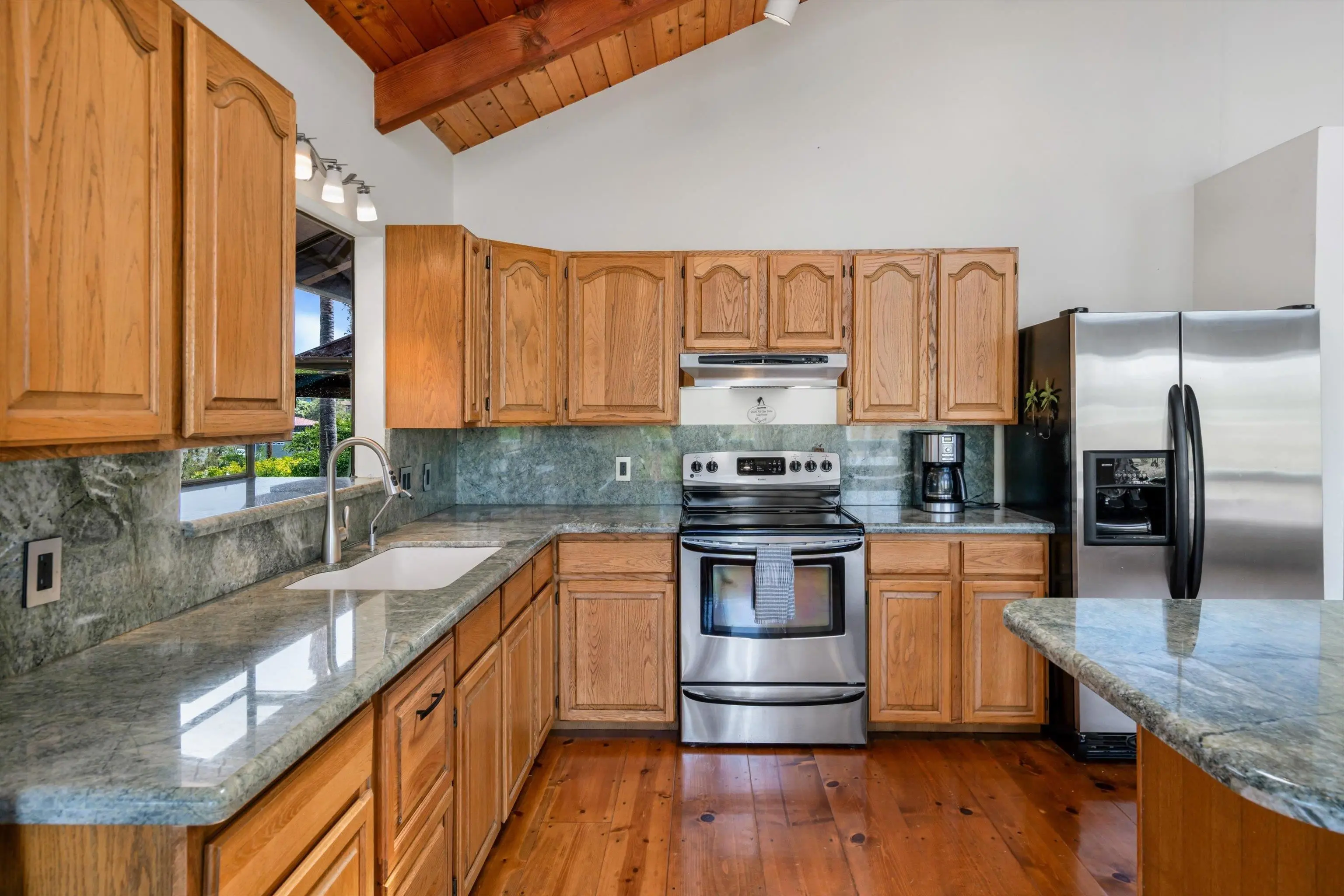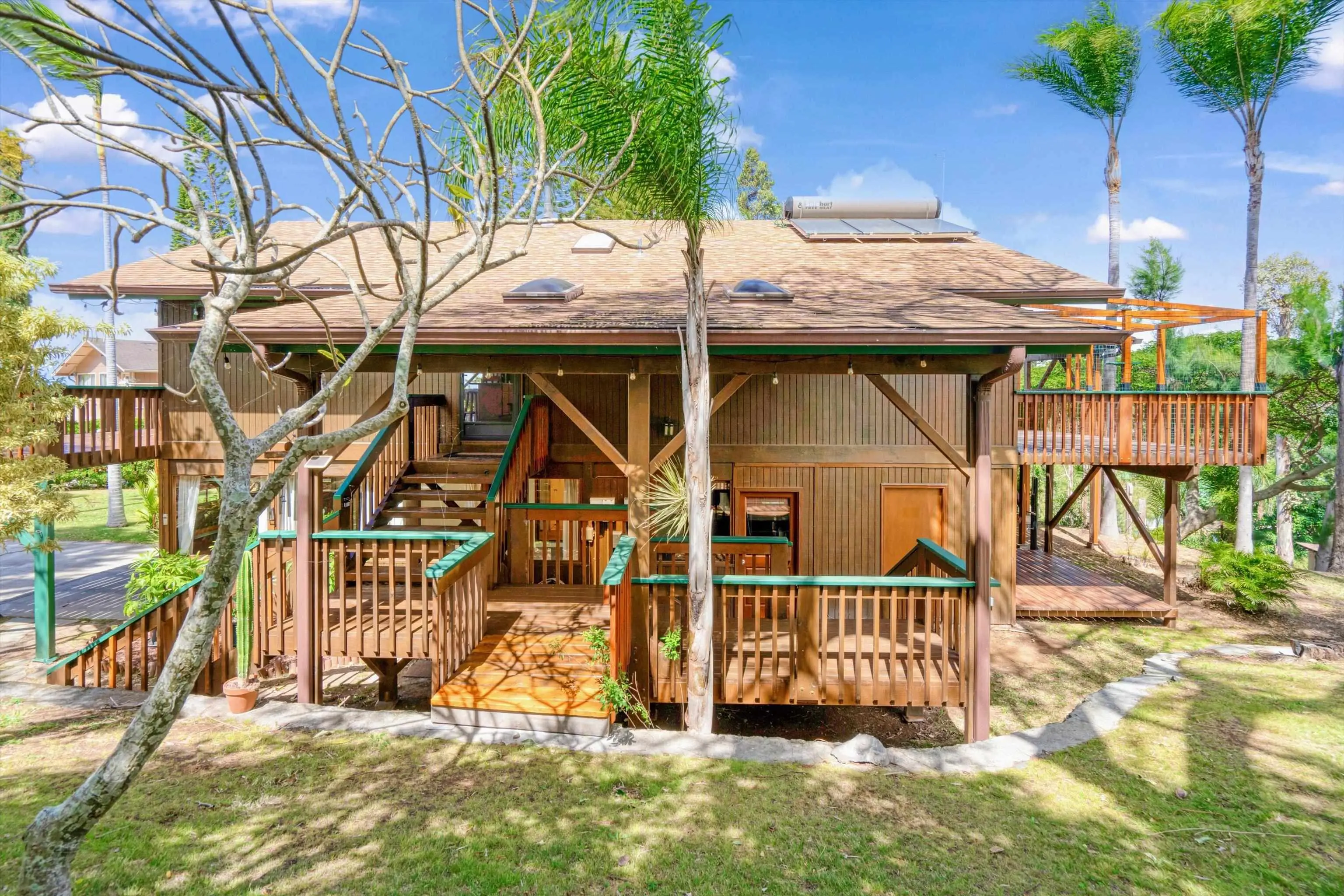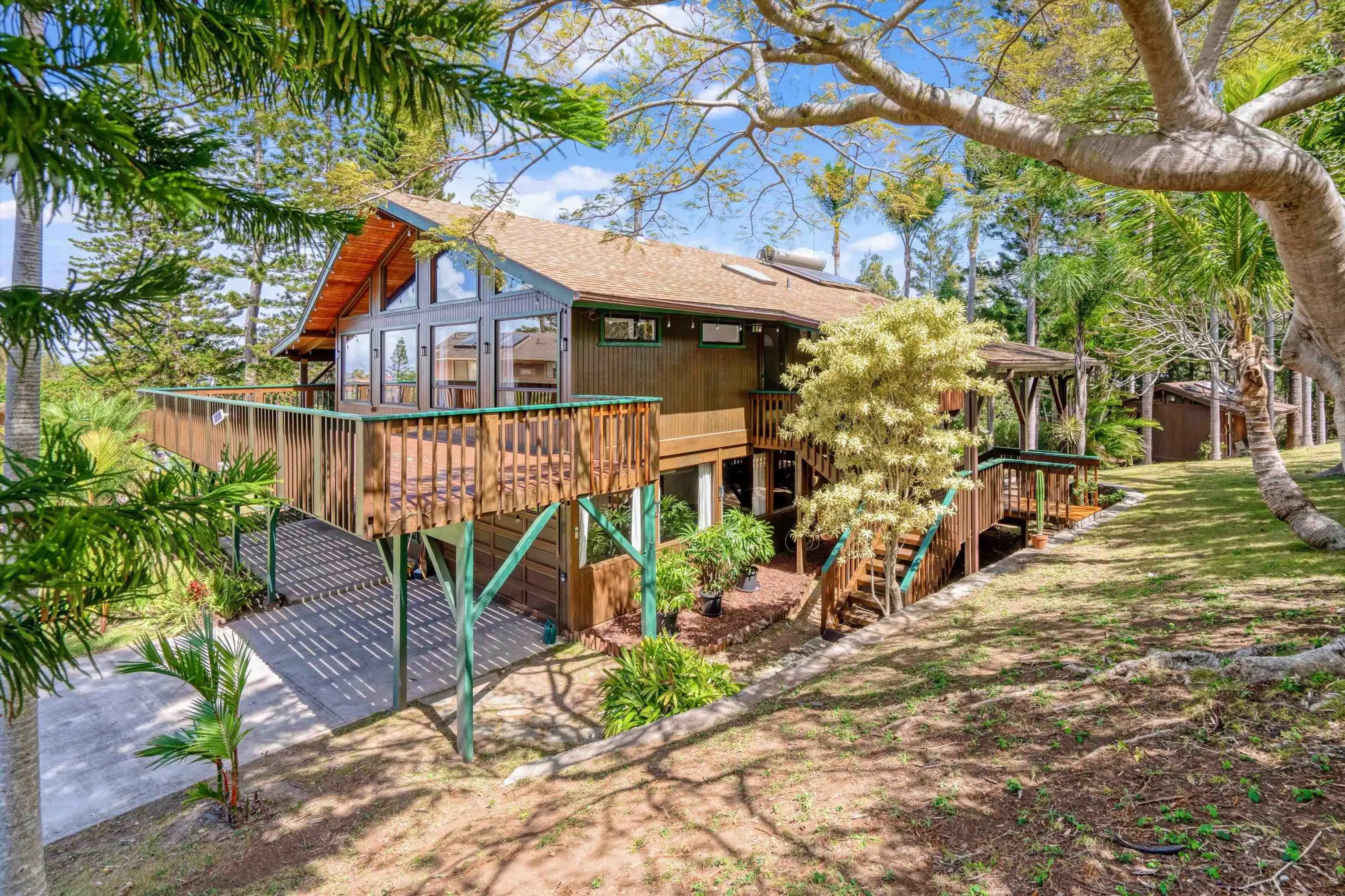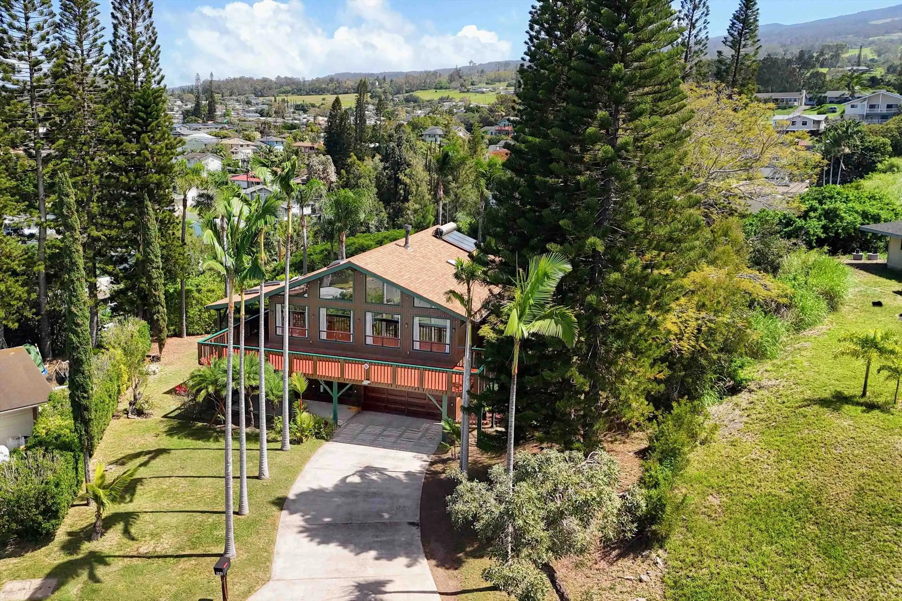 Welcome to 566 Hoene Street in Makawao, situated on a quiet cul-de-sac featuring a custom-built home on a 3/4-acre terraced lot in the Maui Uplands subdivision. This 2-story home has 5-bedrooms and 3 beautifully renovated full baths. There is ample privacy between the upstairs and the downstairs area which has its own electric meter and a separate entrance which makes this space great for potential rental income. Each space offers a sense of seclusion and comfort, ideal for extended family. The backyard is spacious, planted with a variety of trees and offers a park like atmosphere, ideal for kids to play, pets to roam or family gatherings. The neighborhood offers access to a private pool and tennis courts, enhancing the recreational options available within walking distance. Located just minutes from the heart of Makawao towns quaint shops, restaurants, public and private school, a public library, supermarkets and a farmers’ market are all within minutes of this property. Here, you’ll experience a perfect blend of convenience and the relaxed upcountry lifestyle that Makawao is known for. EZ to show!