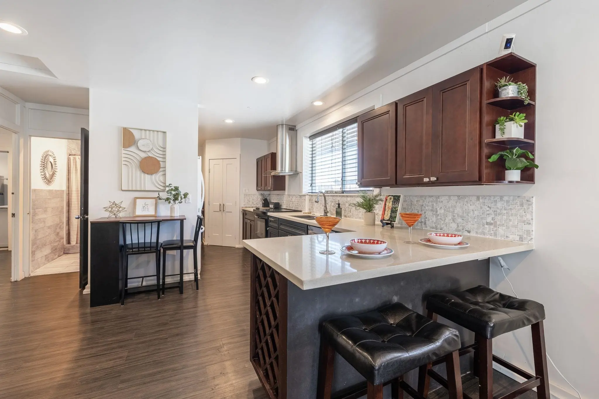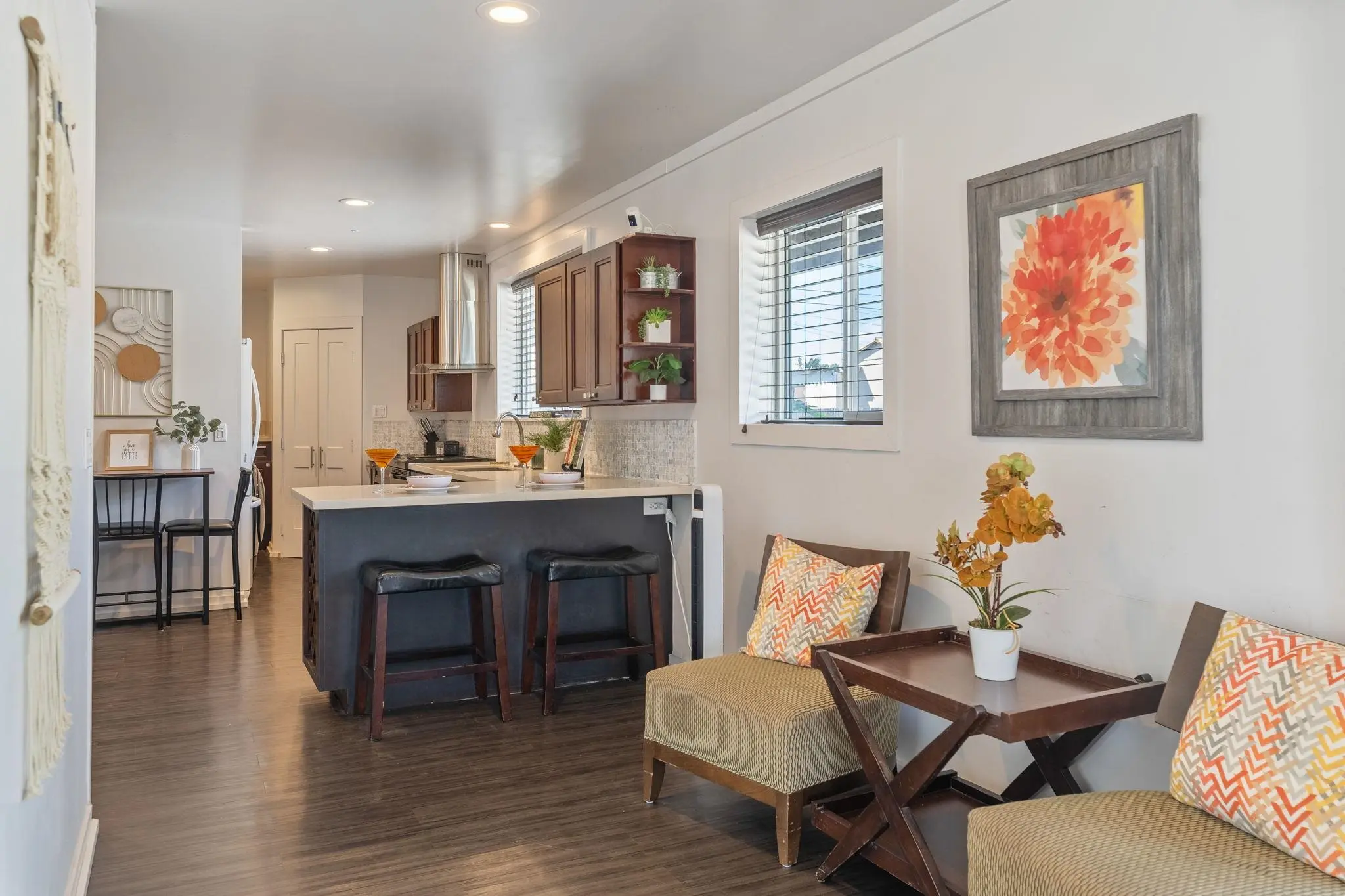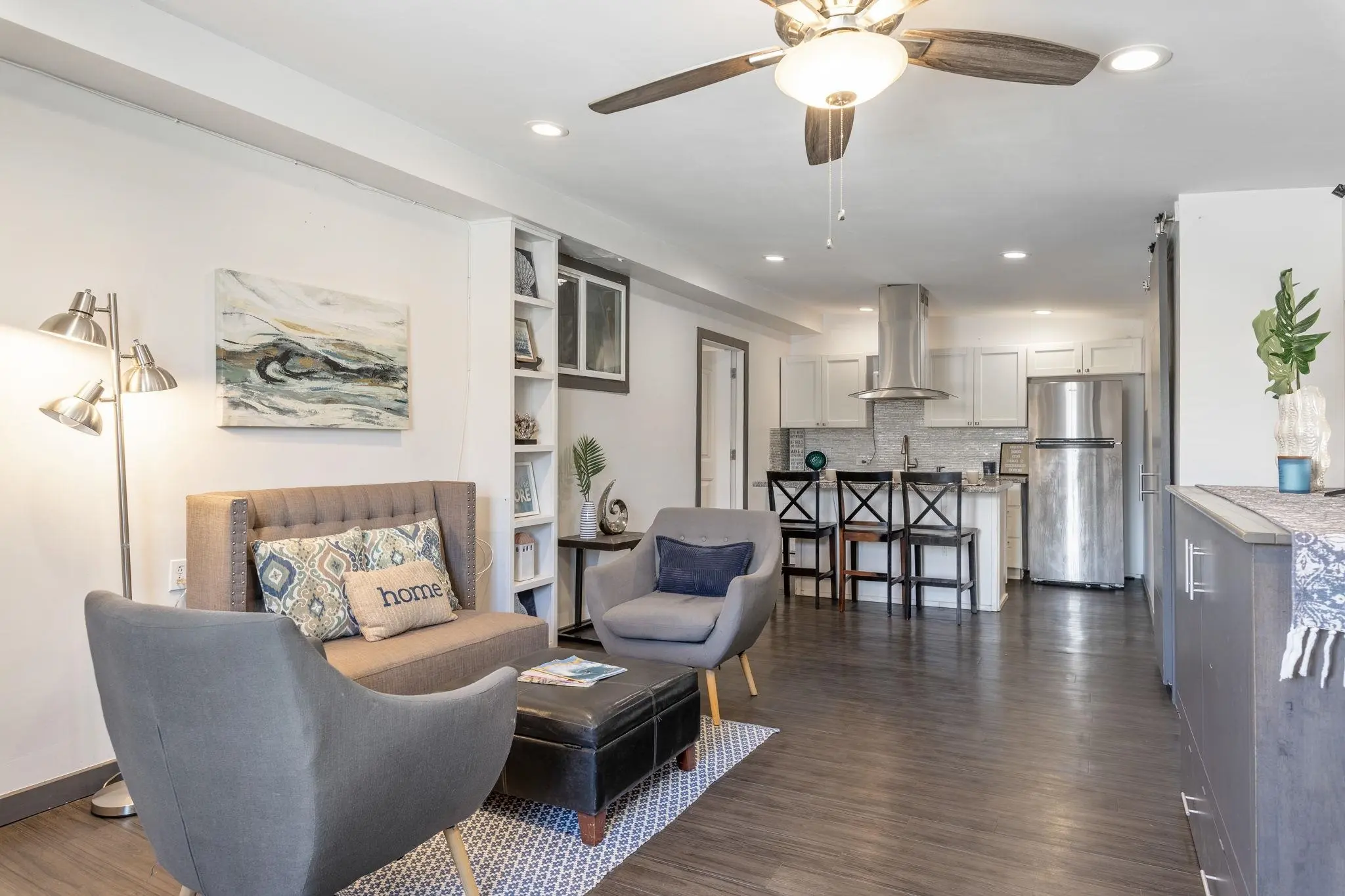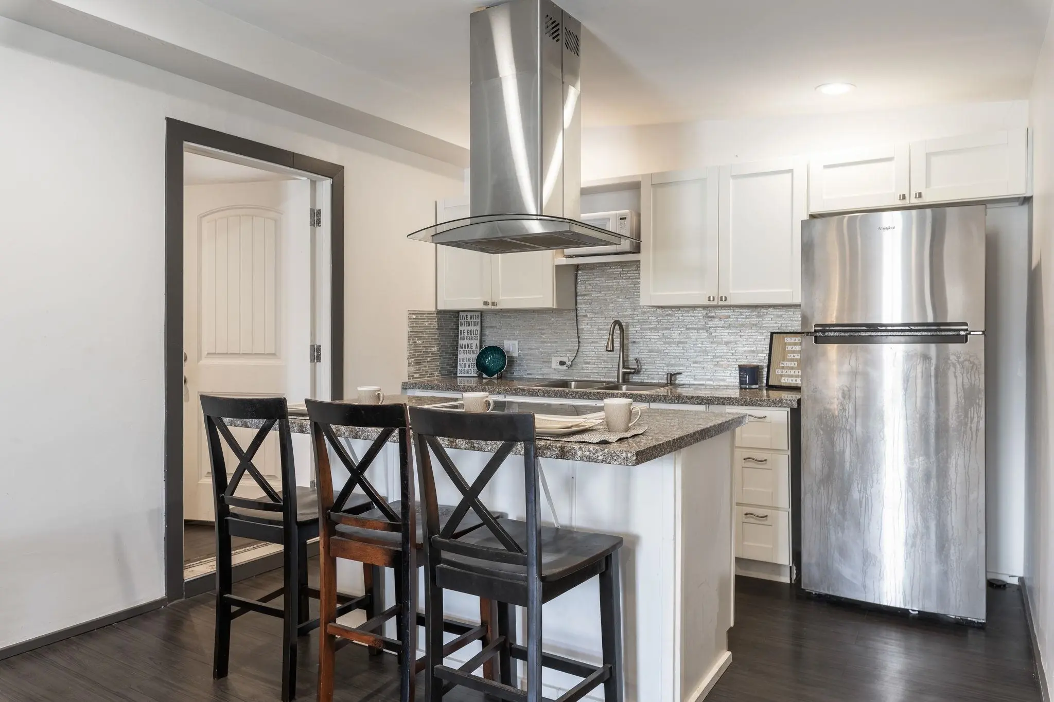 52 Aiai Street is a remodeled, 3 bedroom, 2 bathroom main home and a 2 bedroom, 1 bathroom detached cottage. The main house offers a flexible floor plan that could function as separate living spaces. In the main house, open-concept living and dining areas are ideal for gathering and entertaining. Large windows and modern lighting feel bright and airy, while durable, dark ash flooring offers a stylish contrast. Dual kitchens in the main house offer separate spaces for meal preparation and feature granite countertops, elegant backsplashes, stainless steel appliances and plenty of storage space. Enjoy relaxed dining around the breakfast islands. The main house offers 3 spacious bedrooms and 2 bathrooms with a sleek design, tiled walk-in showers and durable finishes. The 500 square foot detached cottage flows cohesively with the main house design. The cottage includes a cozy front porch, its own yard and storage. Enjoy the outdoor amenities with 3 storage sheds on property, a wide driveway with ample parking space and multiple yards. This property is in a convenient location across the street from the neighborhood park and close to the airport, shopping and dining.