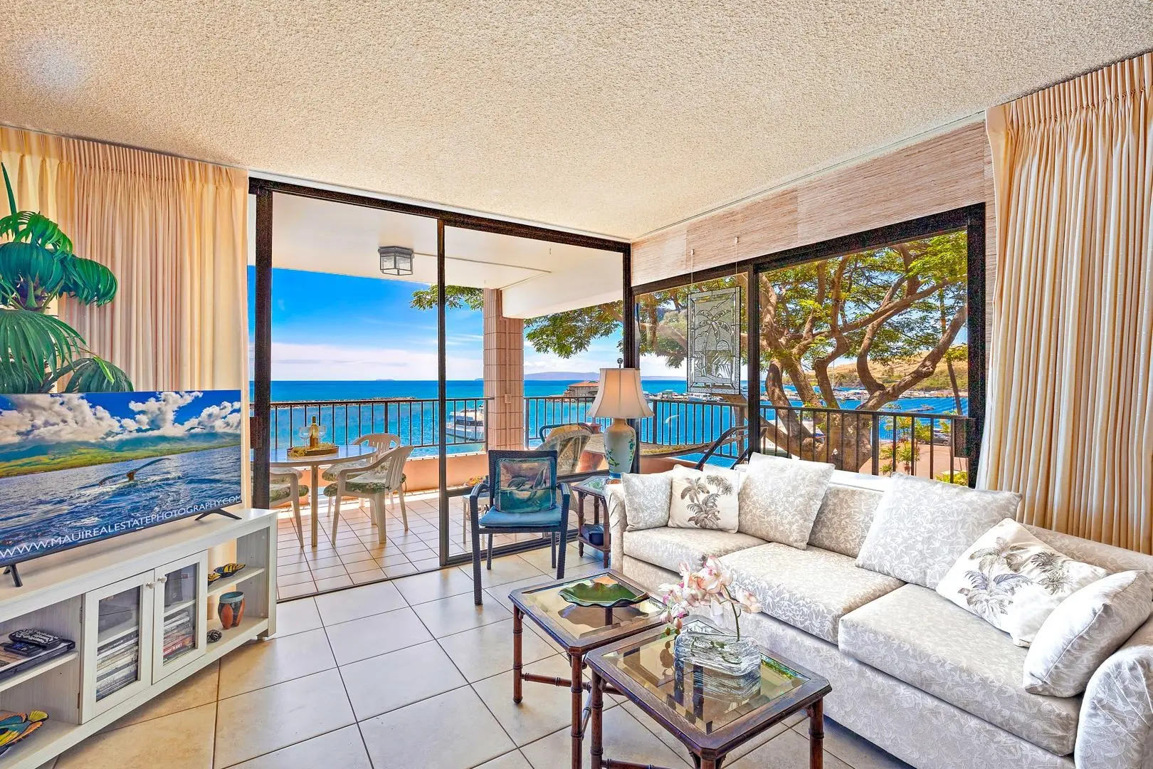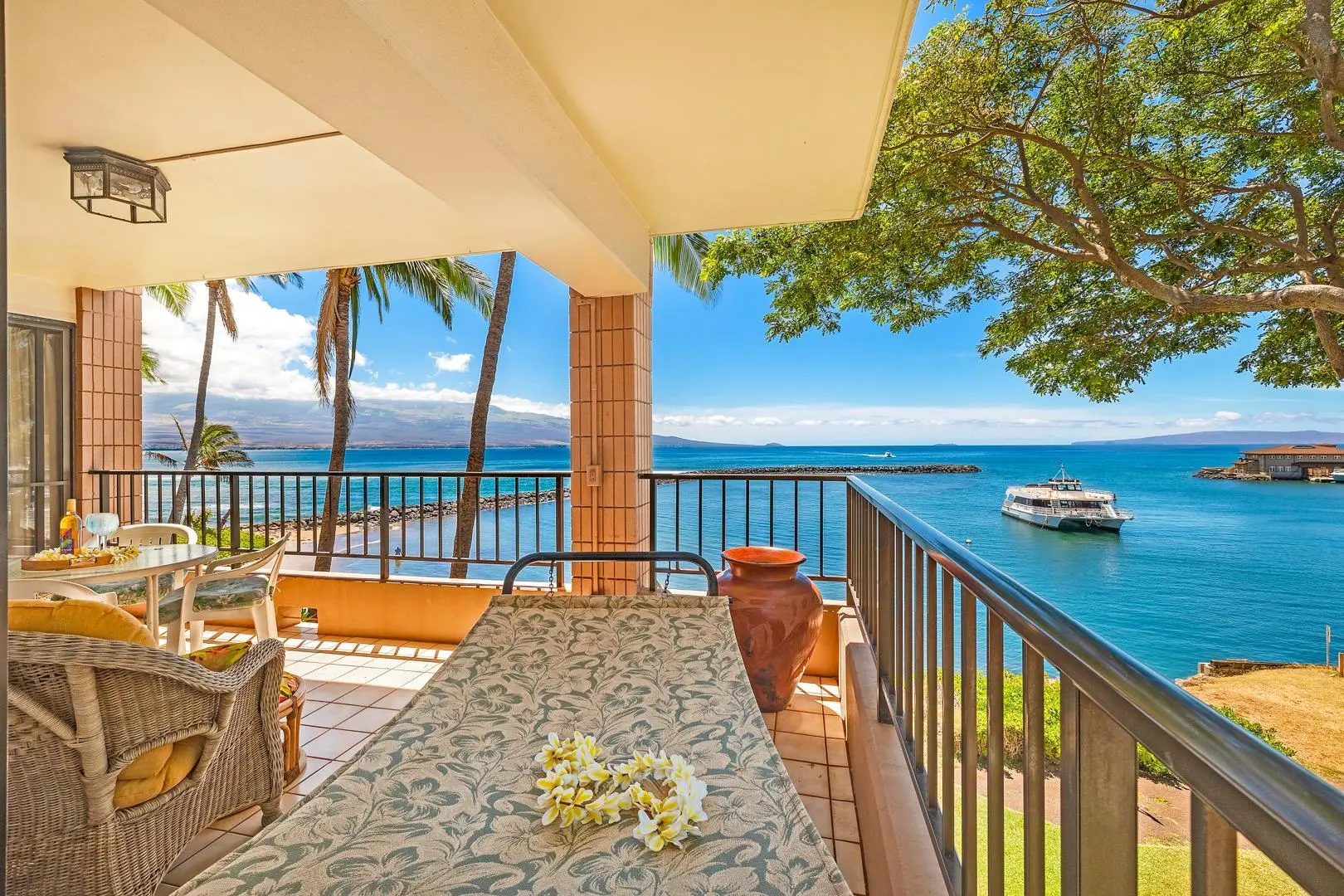 Long-Term Rental Stay for 6 months or up to 1 year lease (and month to month after original lease date expires). Utilities separate. We will send a copy of the utility bill each month. ' This beautiful condo offers 2 bedrooms with King size beds (1 King bed can be separated into 2 single size beds) and 2 full bathrooms. This home comfortably sleeps 4. Paradise awaits you at Maalaea Yacht Marina, Maui. This third floor oceanfront corner unit has extra-large windows and an expanded wrap around lanai (balcony) that offers breathtaking unobstructed views of the Pacific Ocean and Maalaea Harbor. This outdoor living space has a hammock to lounge on and table and chairs to dine. This lovely condo is inspired by the Hawaiian Islands and is adorned with original Hawaiian artwork. This home is fully stocked and ready to move in! There is a full size kitchen with a refrigerator, dishwasher, stove/oven, microwave, utensils, cups, cutlery, plates/bowls, pots/pans, coffee maker, toaster, blender, etc. Linens and towels are provided; there is a telephone for free calls to the USA and Canada. Cable television and FREE 5G (400 mbps) high speed secure Wi-Fi Internet access for your laptop and other devices. We provide hair dryer, full size ironing board and iron. The two bedroom windows have blackout curtains. There are beach chairs, coolers, beach umbrella, cooler, and an assortment of beach equipment and toys for the sand and sun. Step into your oceanfront oasis, where tranquility meets luxury. You'll be captivated by the amazing sights of breaching humpback whales (November-April) and the awe-inspiring "freight train," one of the world's fastest and longest rideable waves, during some summer months. As you rest on your lanai take in the panoramic views of the natural beauty that surrounds you. Savor the sunrise and moonrise over majestic Mount Haleakala, and views of Molokini Crater and Kahoolawe Island. Enjoy watching the chartered boats come and go from the Maalaea Bay harbor. Relax with peace of mind in this secure building, complete with a coded elevator for your convenience. You'll find community laundry facilities just steps away from your unit, making everyday tasks a breeze. Take a dip in the heated pool or cook your barbecue delights at the designated BBQ area, all within the comfort of this quiet, cozy facility with only 45 units. There is plenty to do within a short walk down the road at Maalaea Harbor with great restaurants, live music, and shops. Local amenities for the entire family including the Maui Ocean Center Aquarium, a putt-putt golf course, with rock climbing wall, trampoline and bumper boats. Close by is Kealia Wildlife Reserve with a boardwalk through the wetlands. Stroll on a two mile stretch of unobstructed beach between Haycraft Park and Kihei. This is a wonderful walk! Maalaea Yacht Marina is centrally located on the island between South and West Maui, and is very convenient to the airport and also "upcountry" and Mount Haleakala! Don't miss the opportunity to experience and live on Maui. Reserve your long stay at Maalaea Yacht Marina Condos, Unit 310, and make memories that will last a lifetime. Your dream vacation awaits or you can find this a wonderful place to "work from home". Application and background check required. Security deposit equal to one month’s rent to be held in a trust account. Current General Excise Tax (GET) of 4.712% is in addition to the monthly rental amount. Any tax increases requested by the State of Hawaii will be passed along to tenant. This privately owned condo is operated in full compliance with Hawaii law. General Excise and Transient Accommodation taxes are collected and transmitted to the State of Hawaii on all rentals: GE-046-052-5568-01