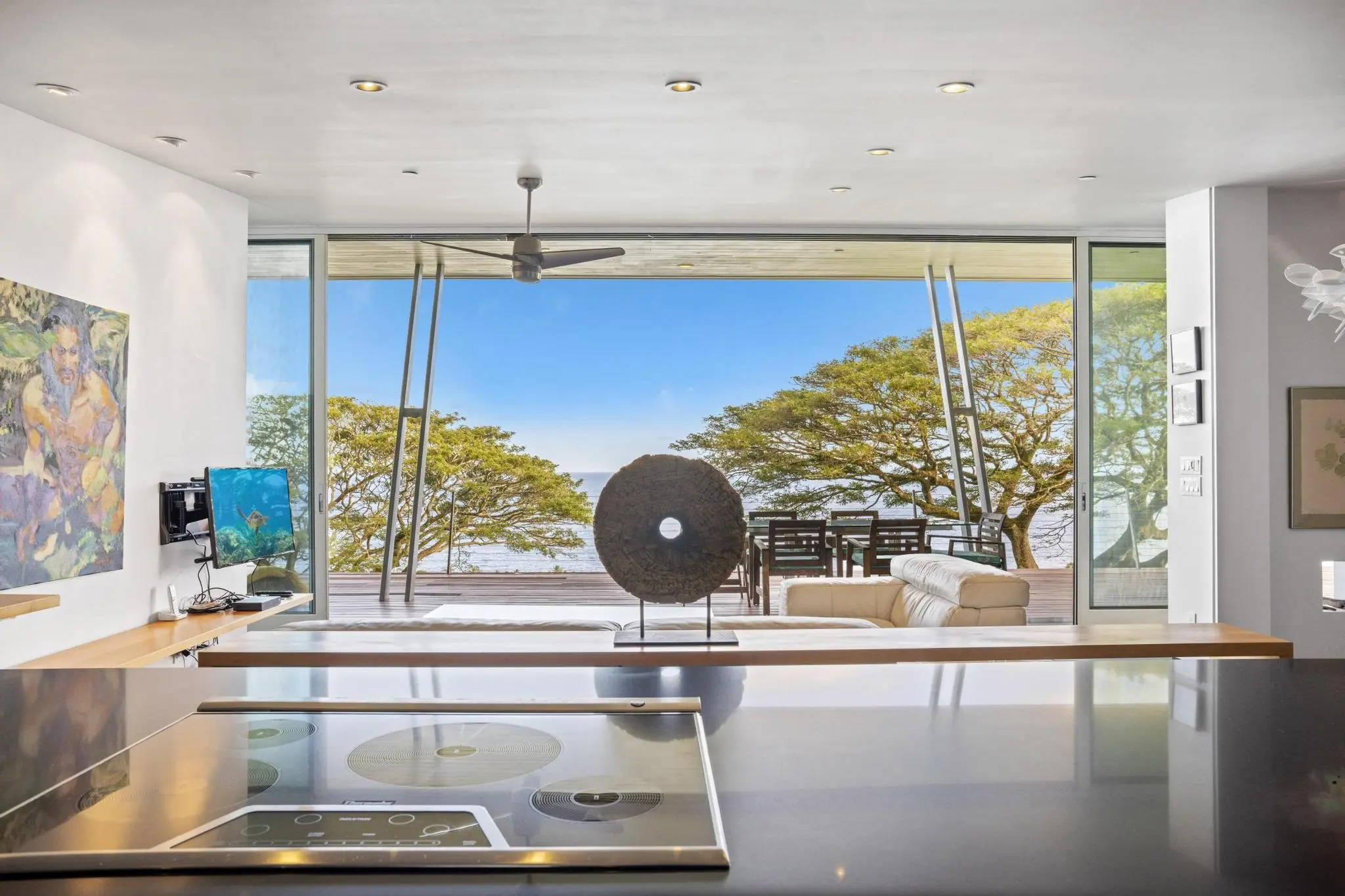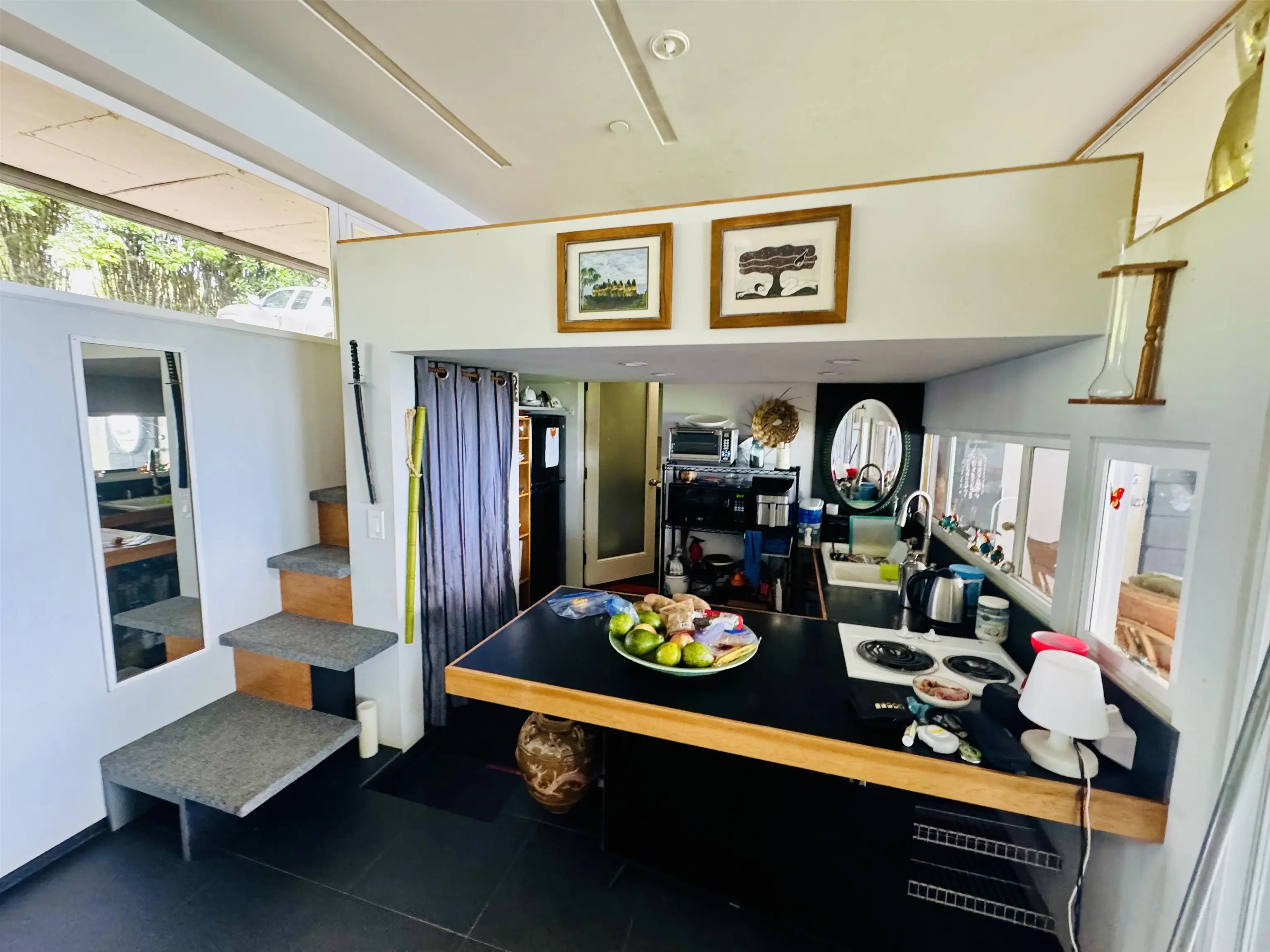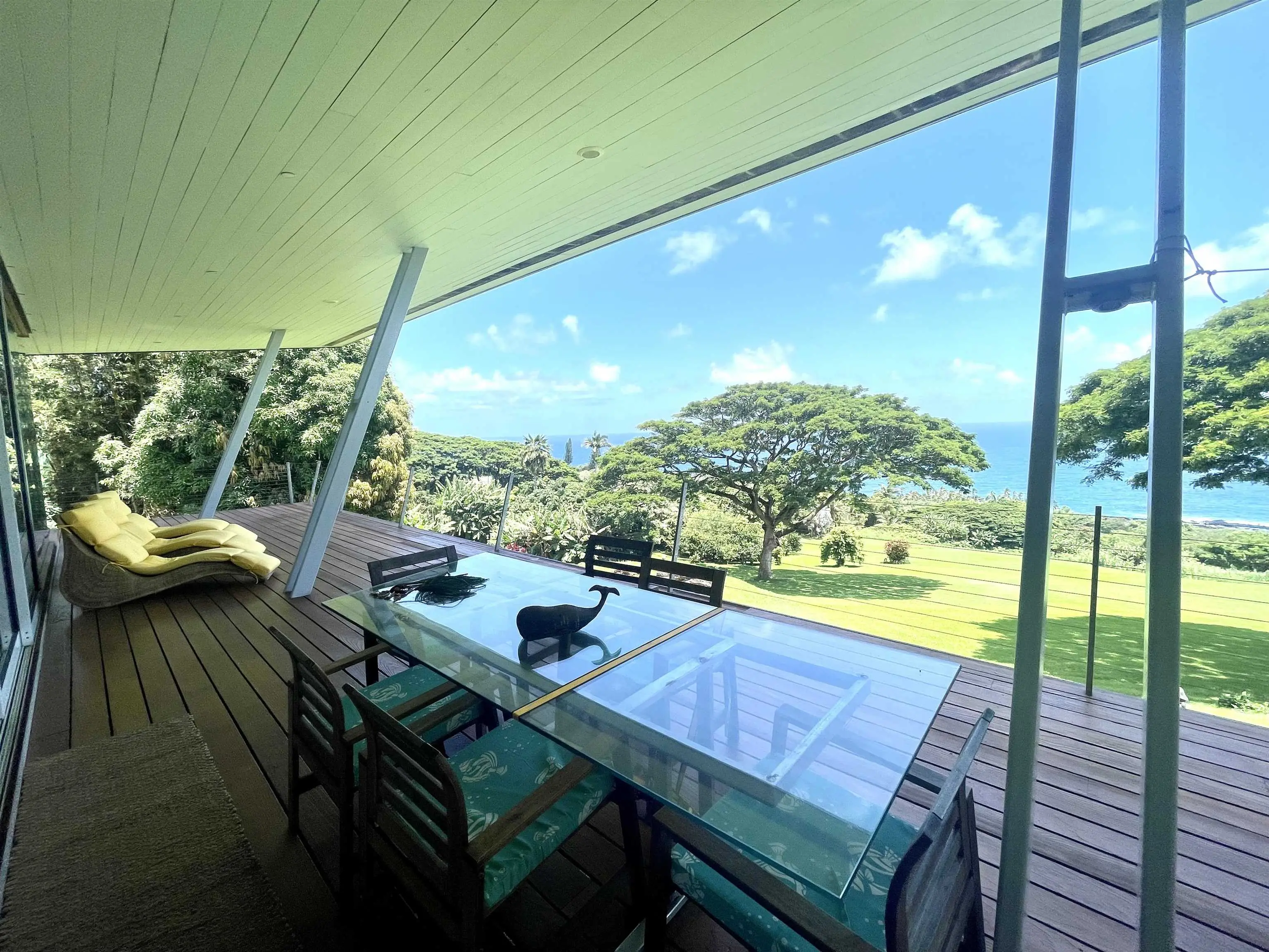 Globally renowned architect Les Wallach, FAIA designed this stunning residence. Celebrating breathtaking East-Maui, Hana ocean views with 1474 sqft indoor living, that flows onto an expansive outdoor enjoyment area and it's own private Water-Well! A progression of closed to openness, arranged with service spaces and ocean facing floor to ceiling glass taking full advantage of magnificent ocean views and surrounding landscape. A "Thermo chimney" allows for passive cooling airflow throughout this exceeding 2 bedroom 2.5 bathroom retreat. The building is elevated on two concrete masonry cores, which free the ground plane for gathering spaces, helps keep the building dry by allowing wind to move through. Large 3/8" thick tempered storm sliding glass doors/windows define the cantilevered deck that embraces the home. A long, low metal roof plane provides shelter from heavy rains, shade. Sleek appliances ignite the open Kitchen.Miuntes to famous Hamoa Beach, Pools of 'Ohe'o and Hana town. Must see work of ART! E Komo Mai to Koali~Hana. Video to come!