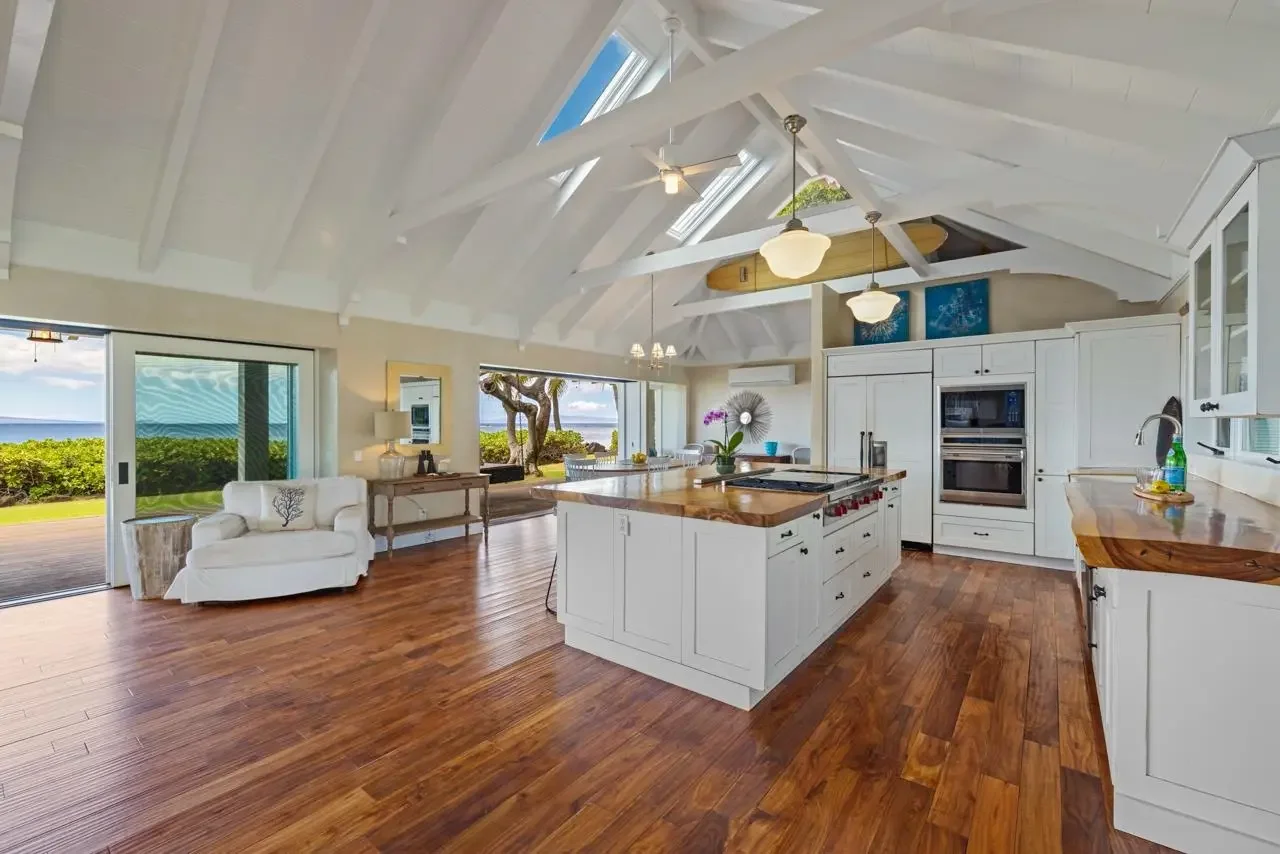 An exceptional opportunity to own a private, pastoral gated oceanfront estate with 127 feet of lineal ocean frontage on a lot just under one-acre in size with close proximity to Haycraftâs Beach Park in Maalaea. Set amidst tropical landscaping, both the plantation-style two-bedroom main home with a rooftop lanai and a respectfully situated studio ohana with an in-deck spa, exude Hawaiian ambiance. Centrally located, but in a world of its own, 210 Hauoli offers a park-like feeling with dramatic ocean views, Freight Trains surf break views, and whale watching in season. This classic retreat built in 1942 was carefully upgraded in 2011. It is casually elegant with a spacious single-level interior with beamed ceilings opening to a large, covered oceanfront lanai for outside downing, relaxing, and entertaining. Being offered turnkey. The adjacent vacant lot at 220 Hauoli, close to an acre in size, is currently listed for sale at $5.390M.