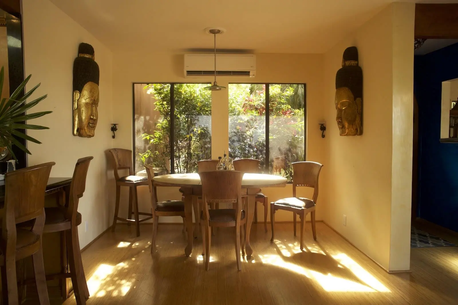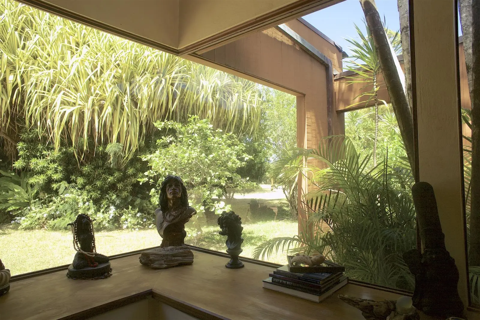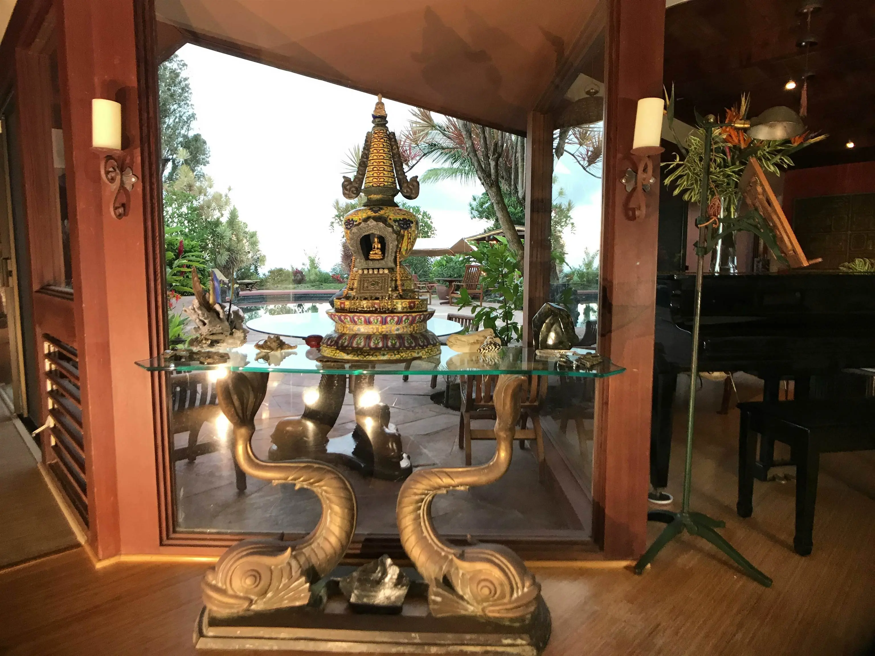 Discover a one-of-a-kind retreat in Haiku, Maui, where modernist design meets lush tropical beauty. This elegant single-story estate spans 2.6 acres, offering privacy, ocean views, and a seamless connection to nature. With curved walls, massive windows, and high-end furnishings, the five-bedroom, three-bathroom main house includes two luxurious suites with private baths and a third suite featuring a private entrance, kitchenette, and spa-like double shower. The property comfortably sleeps 12, with a bonus room for children, and is equipped with modern conveniences like seven air-conditioning units, Wi-Fi in every room, a saltwater pool, and a state-of-the-art hot tub. The interiors are adorned with antiques and treasures, creating a timeless, inviting atmosphere. Outdoors, enjoy a fruit orchard with apple bananas, papayas, citrus, and surinam cherries, along with meadows, mature trees, and the sound of distant waves. Available for rent starting June 1, 2025, at $13,500 per month plus utilities. Additional features include a freestanding massage room, attached 1 bedroom, 1 bath ohana with its own private entrance, Airstream, garage for two vehicles plus ample parking in the driveway, and Meditation Zen Deck This estate is perfect for meditation, yoga, or creative pursuits, with plenty of room to unwind. While offering a peaceful sanctuary, the property is not suitable for events or large gatherings. Pets will be considered (no cats or large dogs). With a six-month minimum lease term, this is your chance to immerse yourself in the unparalleled beauty and tranquility of Maui's North Shore.