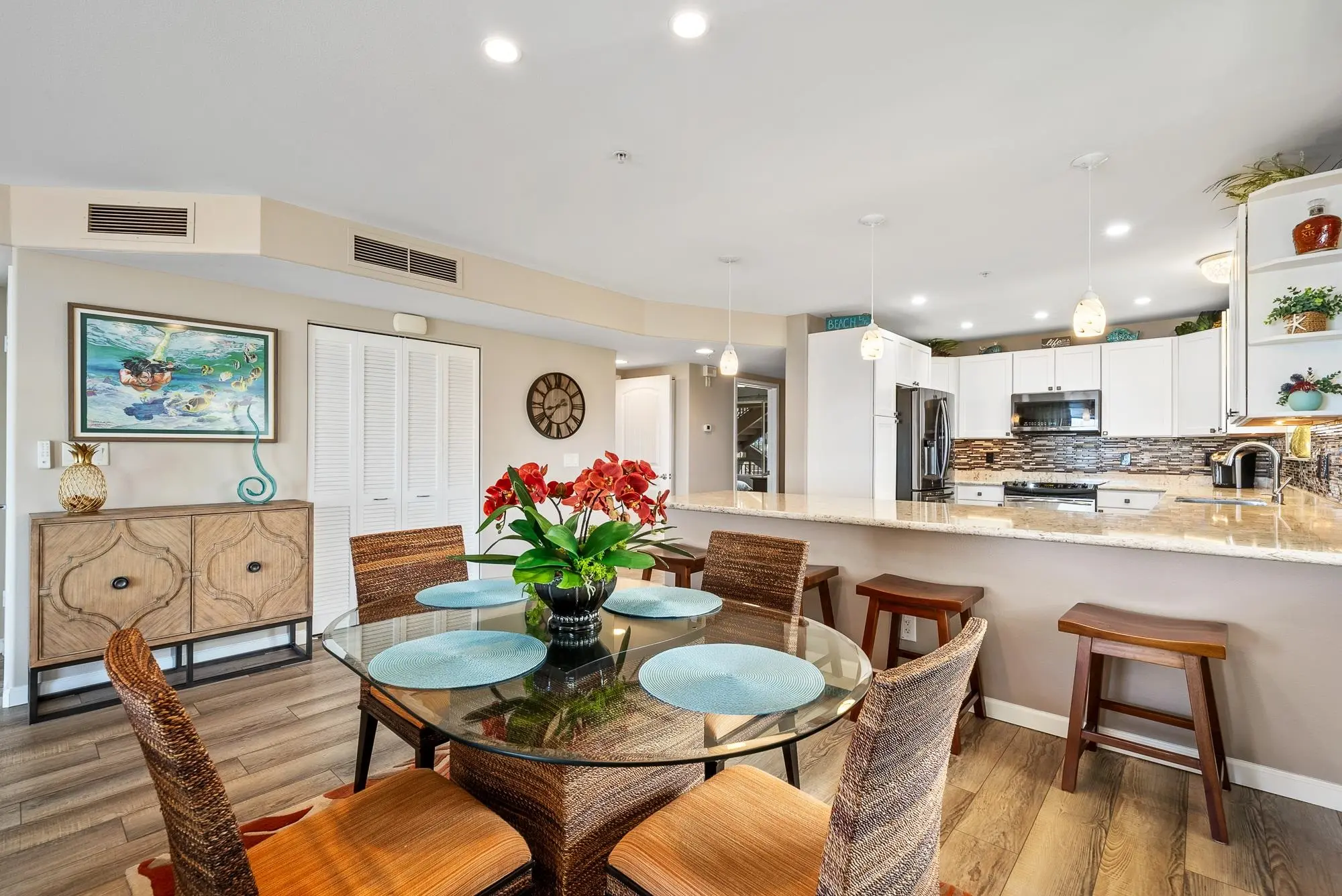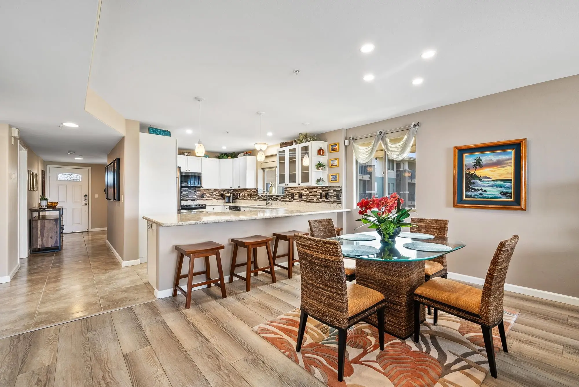 A Great Deal Of Care Was Placed In The Upgrades. The Sellers Have Invested In Many Updates, Including The Kitchen, Bathroom, Beautiful Offset Tile Flooring. The Apartment Is Furnished With Hawaiiana Rattan And Glass. The Moment You Walk Through The Front...