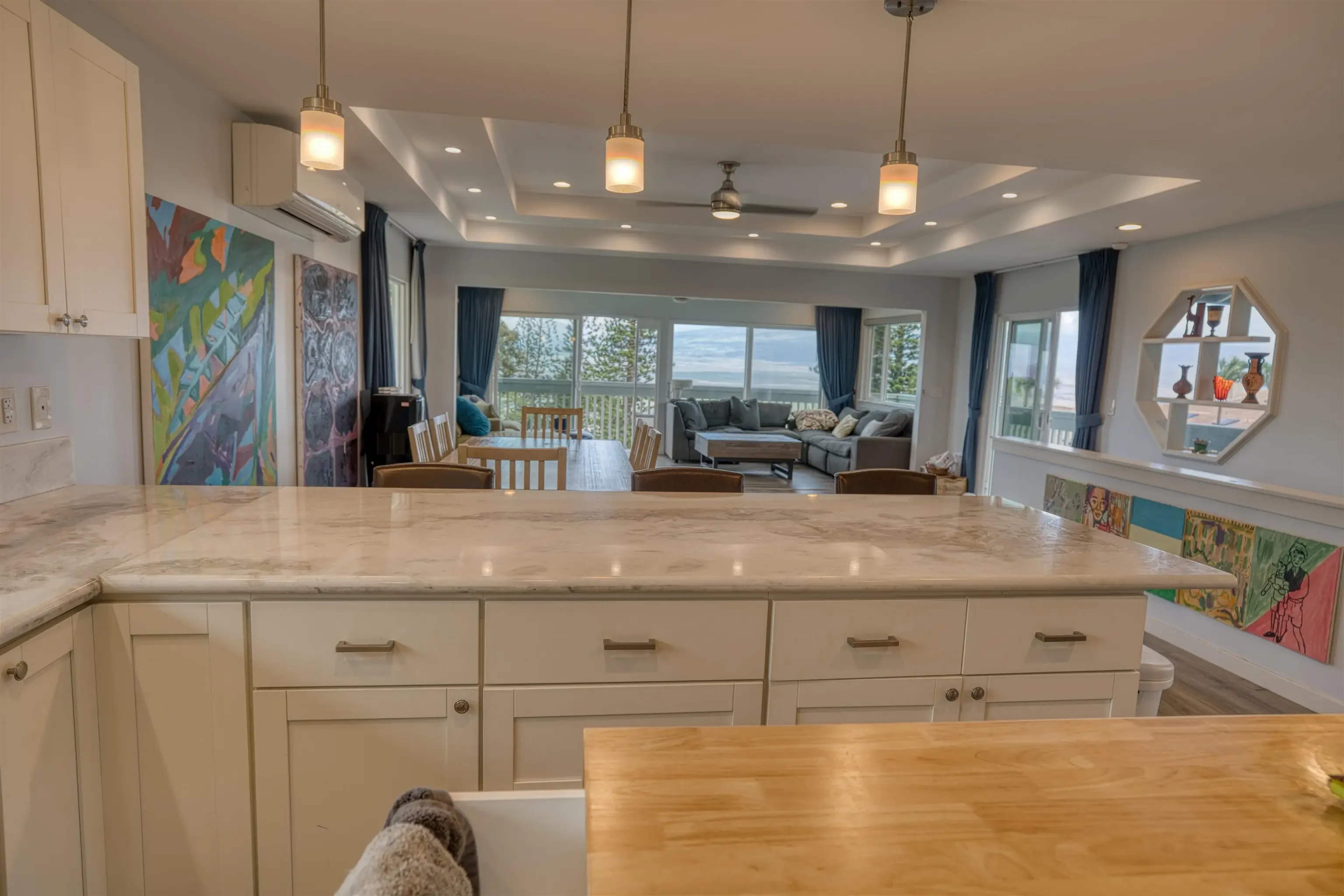 Stunning Modern Two-Story Home in Wailuku Heights with Panoramic Views This fully renovated 4-bedroom, 3-bath home offers breathtaking views of Maui, stretching from the ocean to the majestic Haleakala, while overlooking the Wailuku Heights park. The home boasts new flooring, a brand-new kitchen with cabinets, countertops, appliances, and split-system AC units. The master suite includes a walk-in closet, a luxurious marble-enclosed shower, and a separate bathtub. There is also a dedicated computer room, family room, and dining area. The extended living room with elevated ceilings opens up to a new wrap-around viewing deck. The landscaped yard features a sprinkler system, an outdoor entertainment area with a barbecue on a covered concrete patio, and fish ponds. An upgraded exterior bathroom and shower complement the outdoor space. The downstairs bonus studio offers a kitchen, bathroom, and both interior and exterior access, making it ideal for guests or rental potential. This home combines luxurious living with unmatched views and modern conveniences. Seller has an active Hawaii Real Estate license. Seller is a co-lister. Watch the 3D Video at the end of the first video.