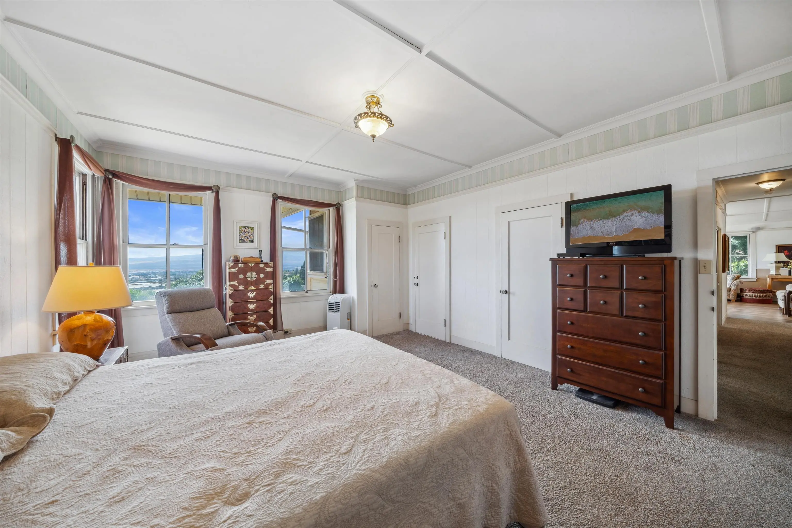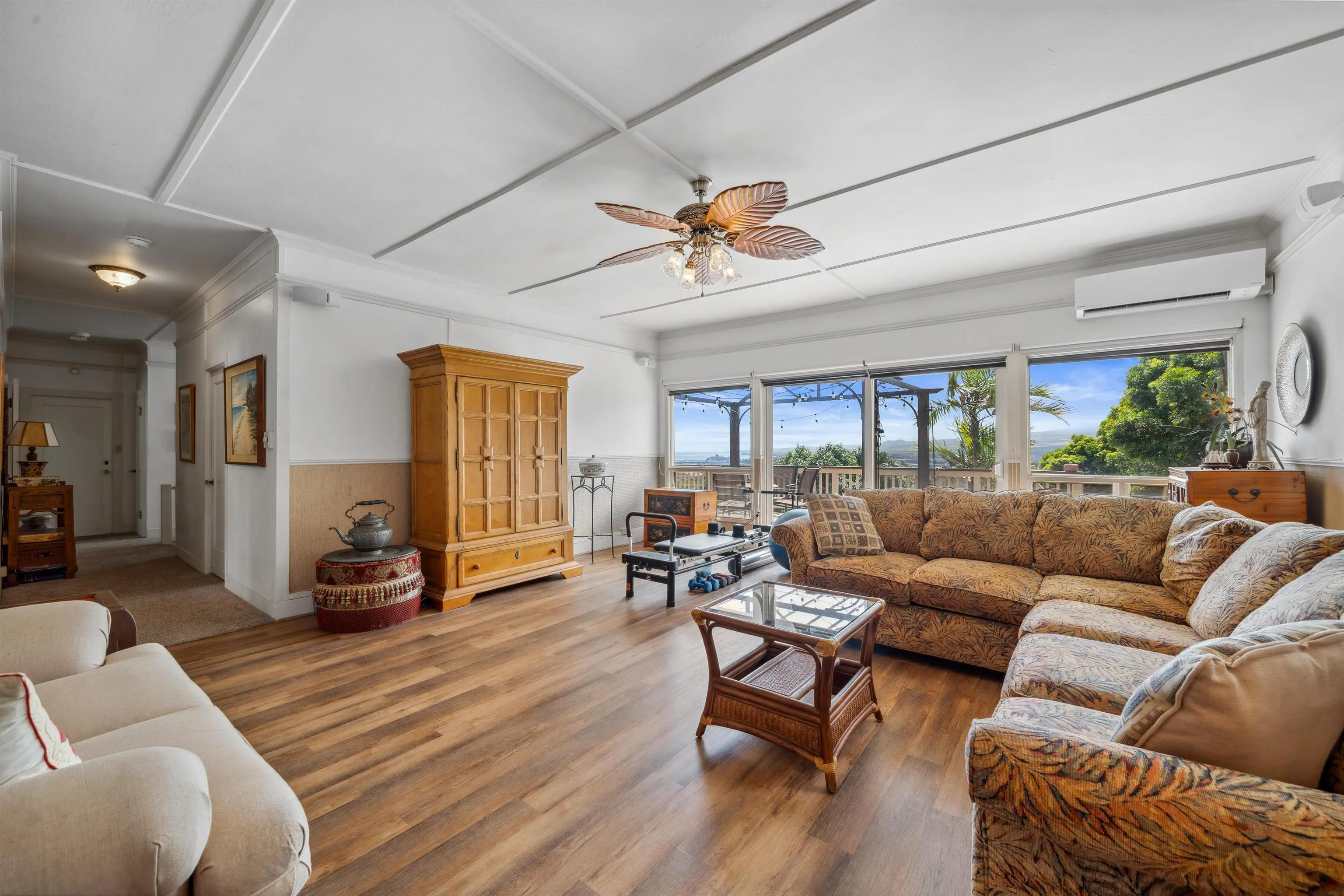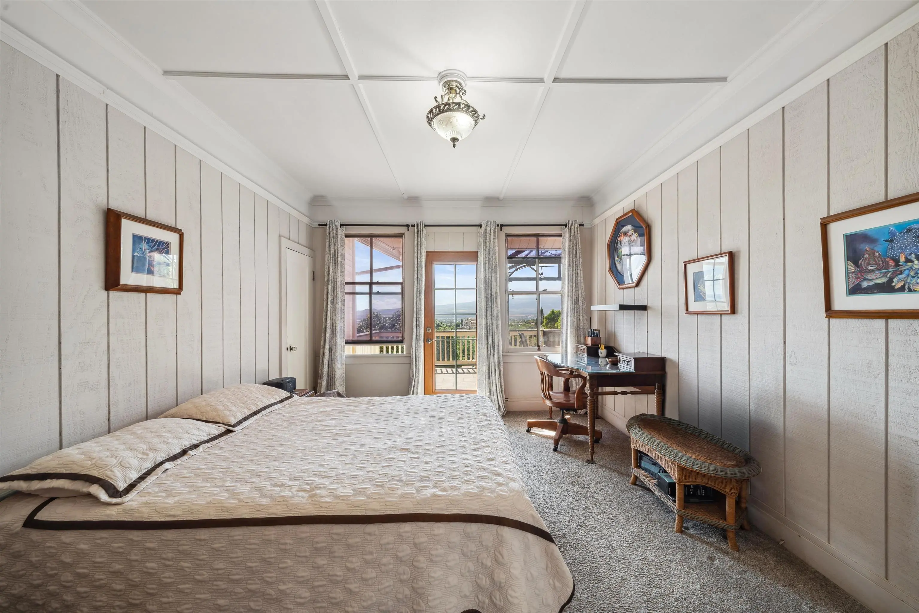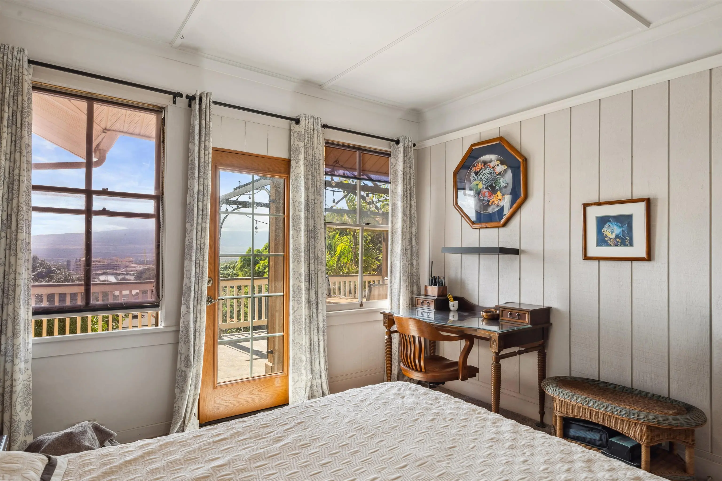 Charming “Plantation Style” home situated on a fully landscaped ½ acre lot with views galore! The current R-3 zoning offers potential. The property has a Photovoltaic system consisting of 55 panels and is owner owned. You will appreciate the ocean, mountain and harbor views. The open living room leads out onto the upstairs patio and the stairway takes you down to the 1st story family room, kitchenette and enclosed patio. The kitchen is bright with white cabinets and Quartz counter tops with 2 sinks. Other Features include: glass door knobs, crown molding, wood hung windows, and Split AC units built in cabinets with glass doors & a cozy breakfast nook and a comfortable dining room. The seller will be leaving some furniture items. The seller had the house tented for termites and the warranty will be provided to the buyer at closing. There’s a Koi fish pond that is no longer being used. But, materials are there if you’d like to raise Koi again. This wonderful property is conveniently located in Wailuku near schools, churches, hospital, restaurants, shopping, and the MACC. Property is being sold in As-Is condition to qualified buyers. Two days notice to show.Thanks!