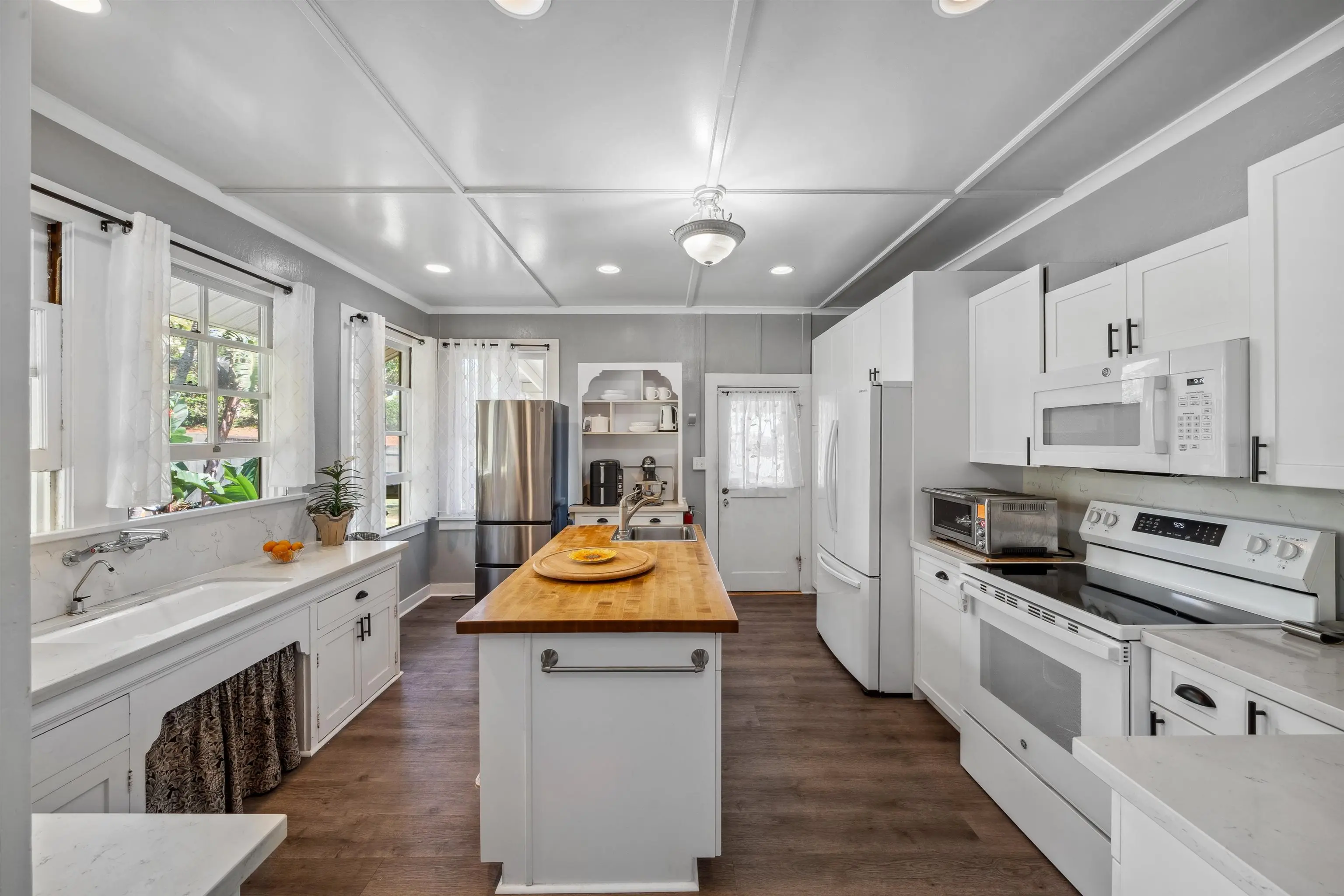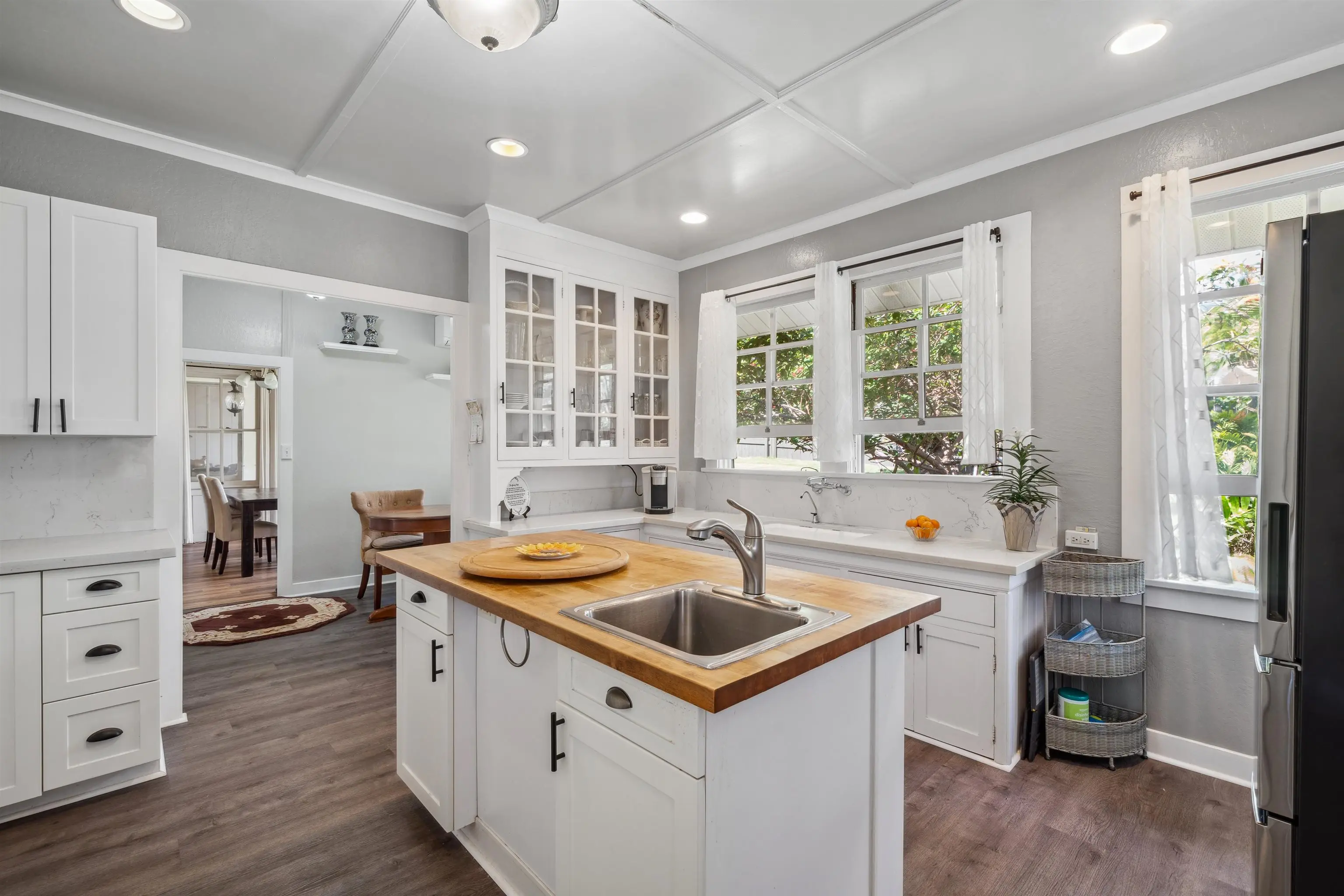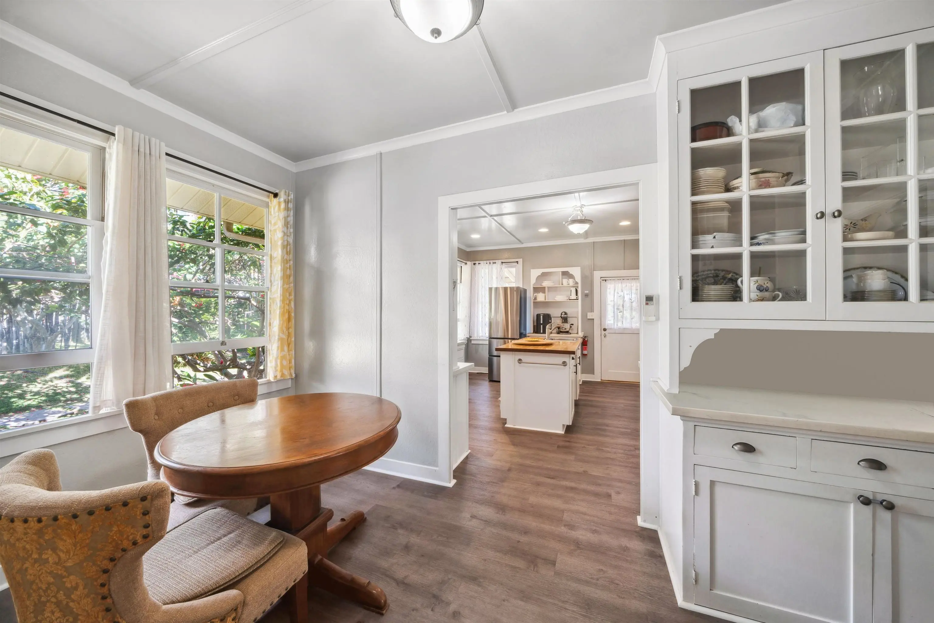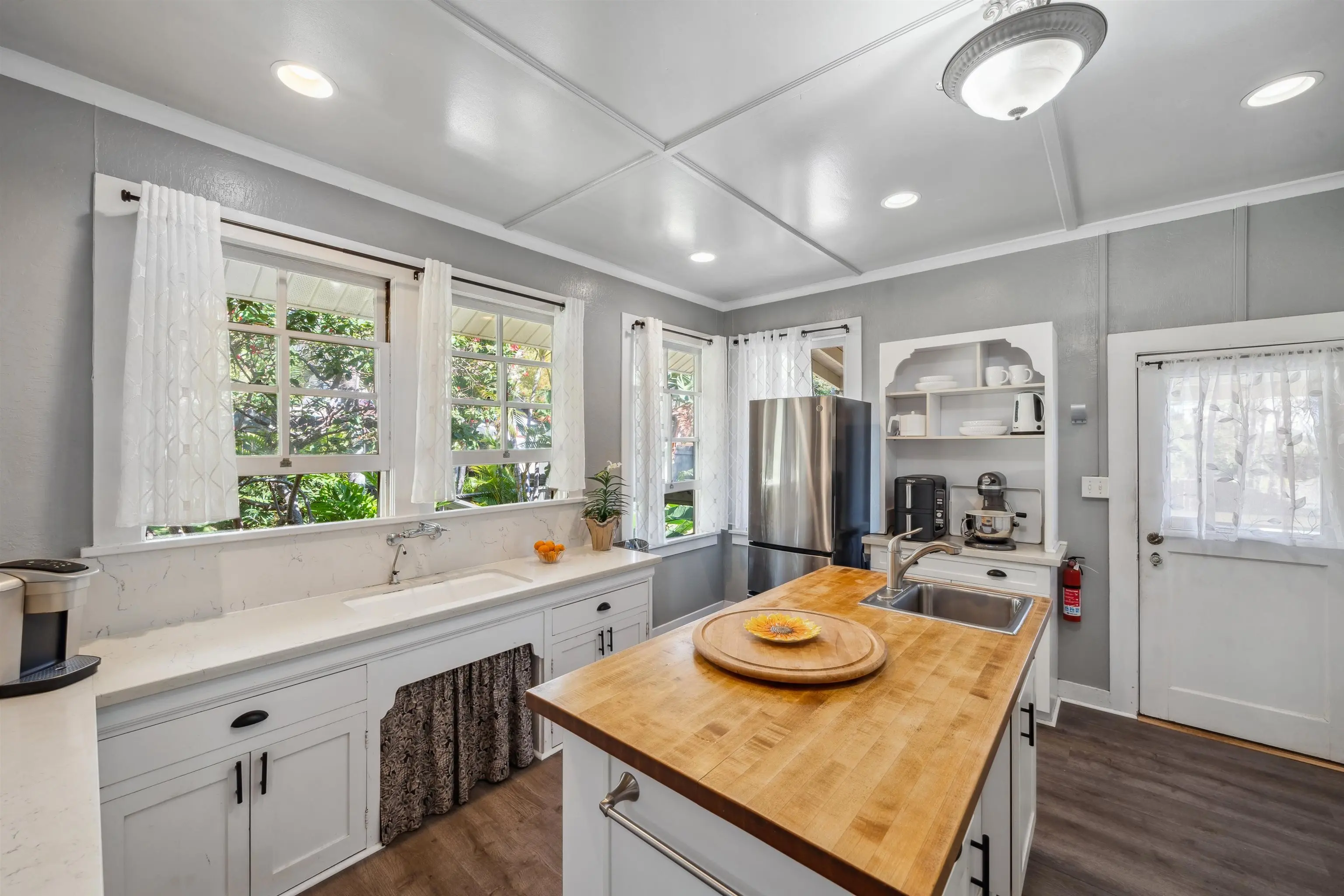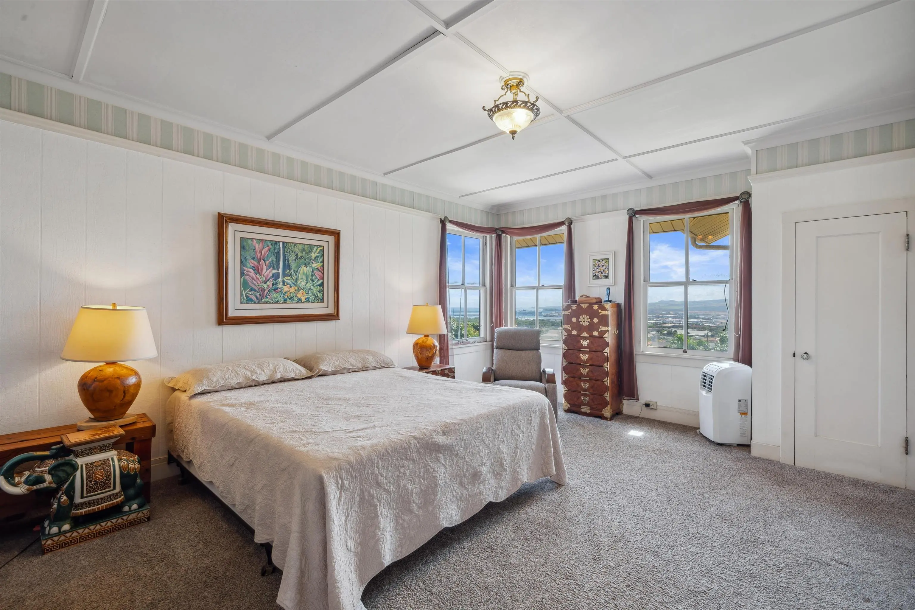 Charming “Plantation Style” home situated on a fully landscaped ½ acre lot with views galore! The current R-3 zoning offers potential. The property has a Photovoltaic system consisting of 55 panels and is owner owned. You will appreciate the ocean, mountain and harbor views. The open living room leads out onto the upstairs patio and the stairway takes you down to the 1st story family room, kitchenette and enclosed patio. The kitchen is bright with white cabinets and Quartz counter tops with 2 sinks. Other Features include: glass door knobs, crown molding, wood hung windows, and Split AC units built in cabinets with glass doors & a cozy breakfast nook and a comfortable dining room. The seller will be leaving some furniture items. The seller had the house tented for termites and the warranty will be provided to the buyer at closing. There’s a Koi fish pond that is no longer being used. But, materials are there if you’d like to raise Koi again. This wonderful property is conveniently located in Wailuku near schools, churches, hospital, restaurants, shopping, and the MACC. Property is being sold in As-Is condition to qualified buyers. Two days notice to show.Thanks!