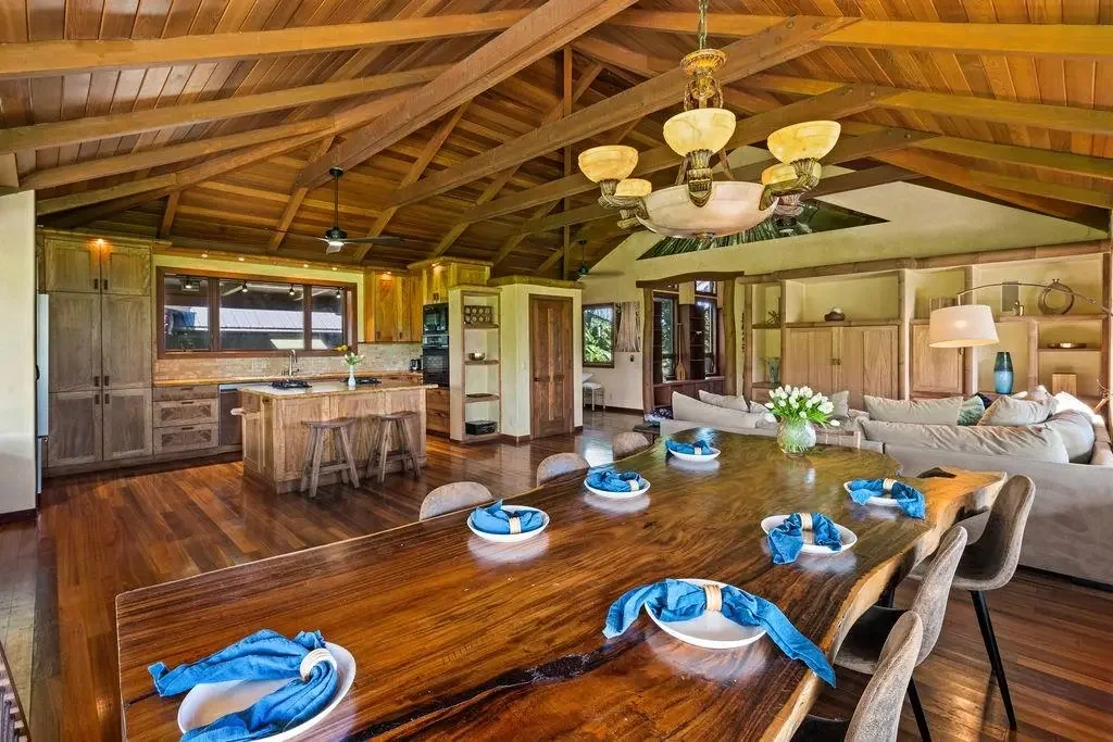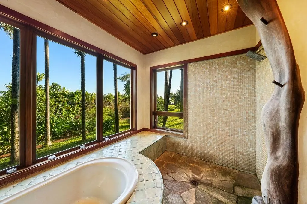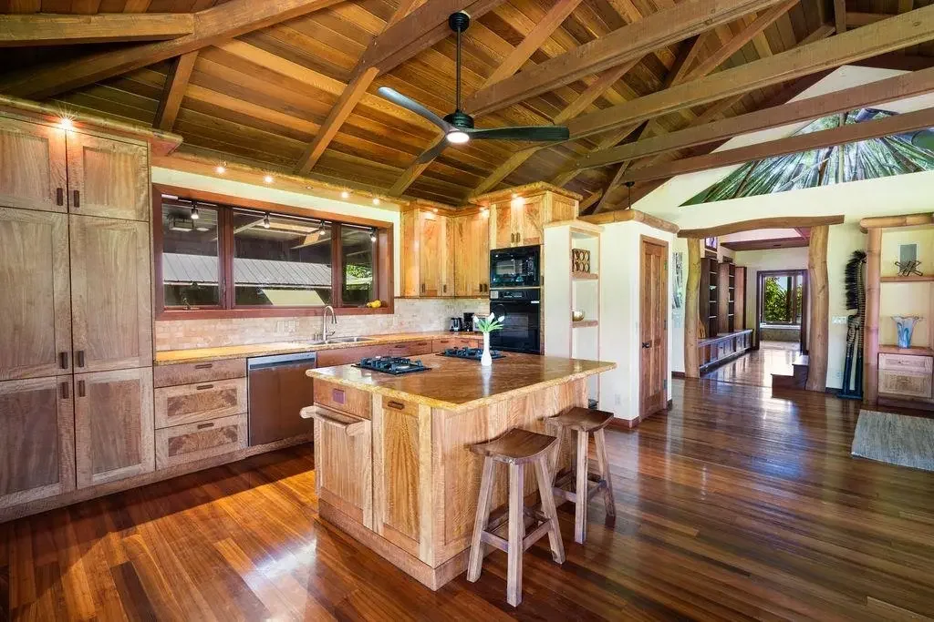 Located on Maui's North Shore and only a 30 min drive from the airport, this property offers a private oasis, irreplaceable natural resources, and panoramic ocean/coastline/waterfall views! This is a perfect generational estate, wellness retreat, or visionary compound! Come tour this double fenced private estate where you will walk through hand crafted 24 foot custom gates to find 6 permitted structures that blend Japanese, Hawaiian and Balinese architectural styles, a yoga studio, an office/garage, an infrared sauna and a custom loft. Take the stone walking path encircling the estate to explore the rainbow eucalyptus forest, paperbark tree grove, and the various trees (cherry, papaya, etc). With a wrap around driveway with parking for 20+ cars, this property is perfect for entertaining family and friends! This property has a 280 foot private well with county water rights, volcanic soil ideal for agriculture, and owned solar with commercial grade infrastructure making it a self-sustainable getaway! Seller has invested millions into the property for custom upgrades/improvements. Do not miss out on this unique property! Seller prefers to sell at 50 percent ownership.