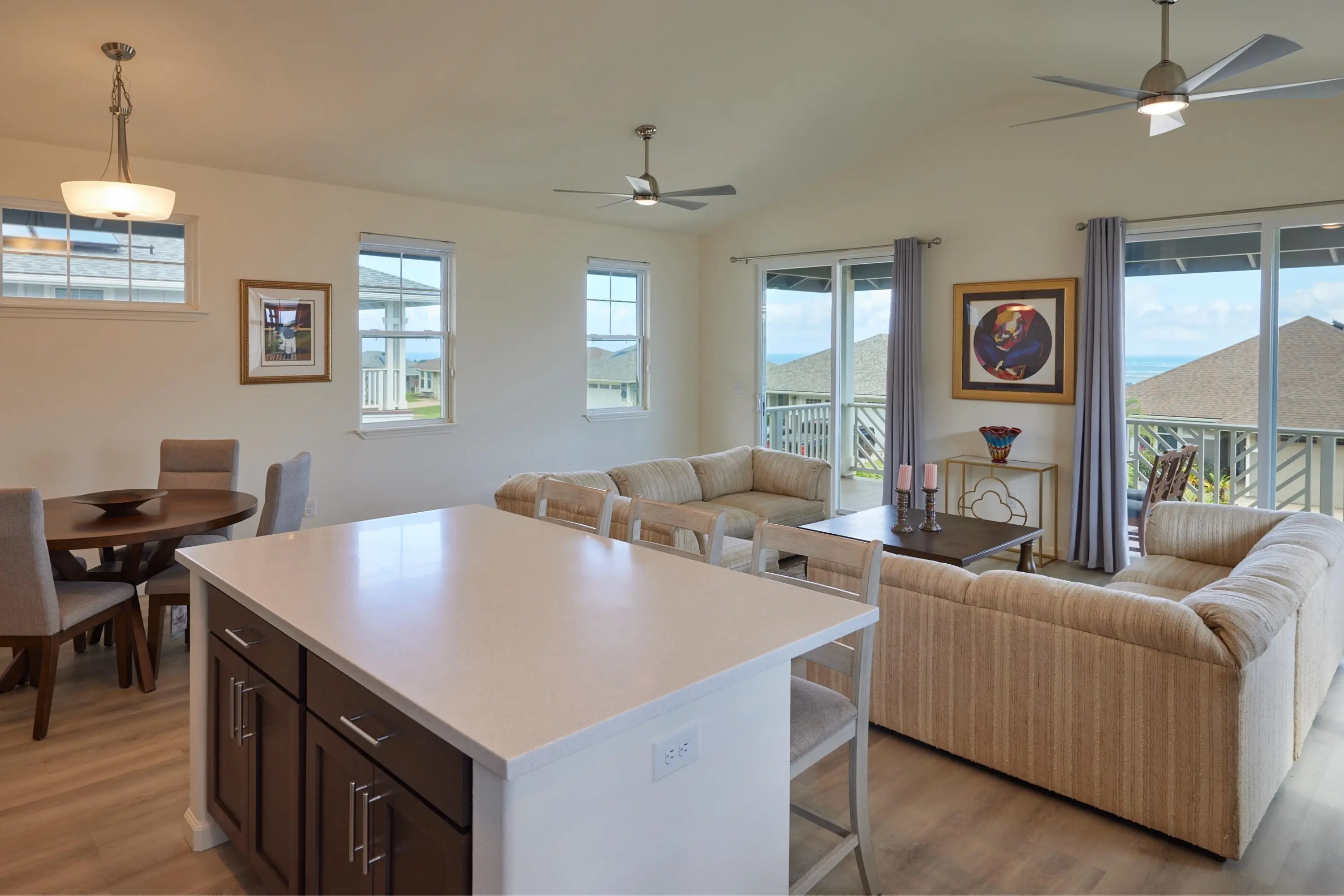 Live Aloha in Anuhea at Kehalani, Central Maui’s newest single-family home community consisting of 164 residences. This newly built home, completed in 2023, features vaulted ceilings in the second-floor great room, 9-foot ceilings throughout, oversized dual-glazed vinyl windows, Corian countertops, and a full kitchen appliance package including refrigerator, range, microwave, washer, and dryer. Luxury vinyl plank flooring flows throughout the home including stairways, with carpet in the bedrooms for comfort. Located near the Kehalani walking and biking paths and neighborhood parks, this home offers incredible views of Haleakala, the West Maui Mountains, and the ocean and harbor facing the North Shore. Exterior photos were taken prior to weed matting being installed. To support the Buyer in completing the landscaping, the Seller shall credit $10,000 at closing toward the Buyer’s closing costs and prepaid expenses. A transferable 10-year limited builder’s warranty provides added peace of mind. Here’s your opportunity to become part of a vibrant new community in the heart of Wailuku.