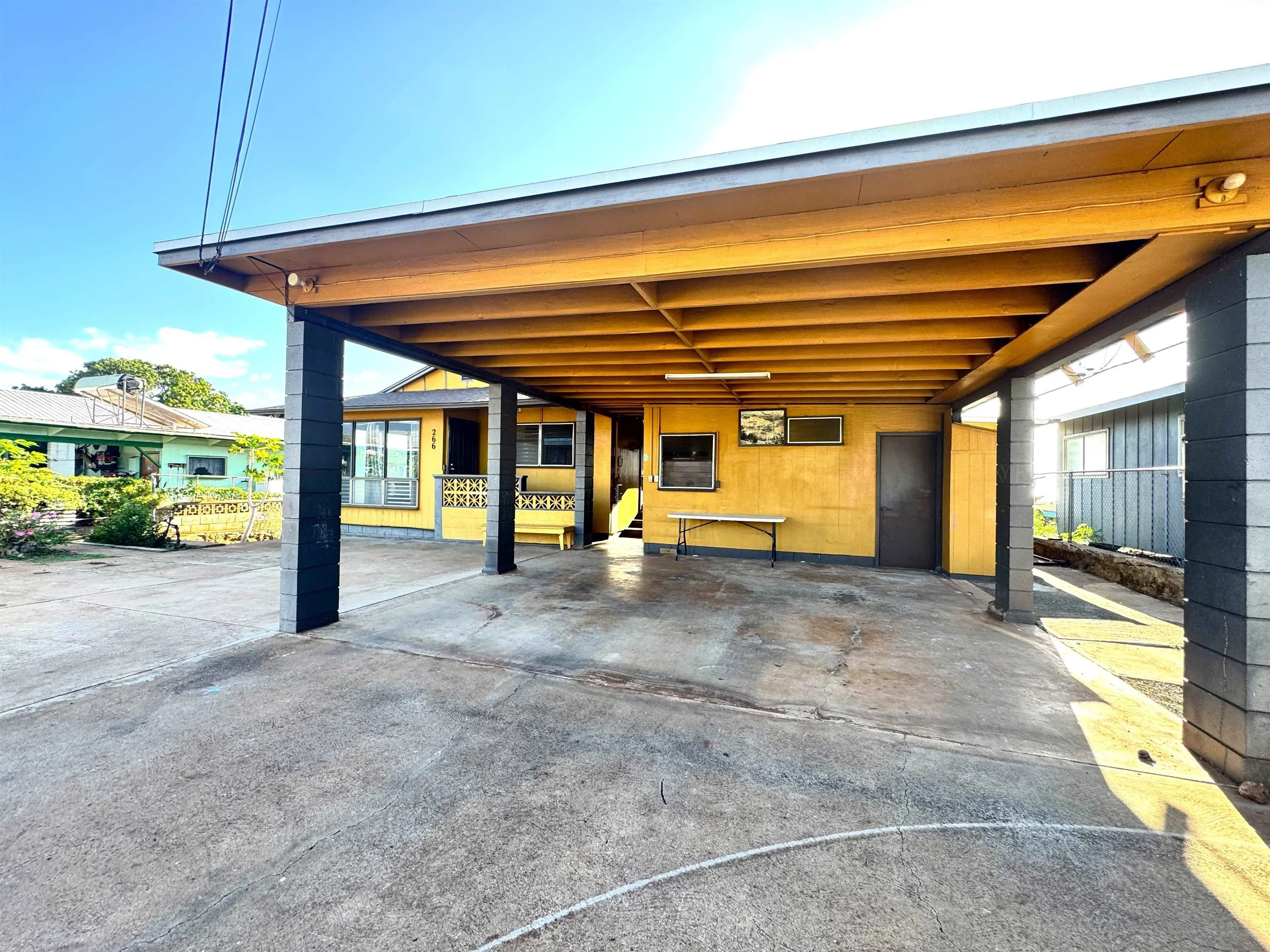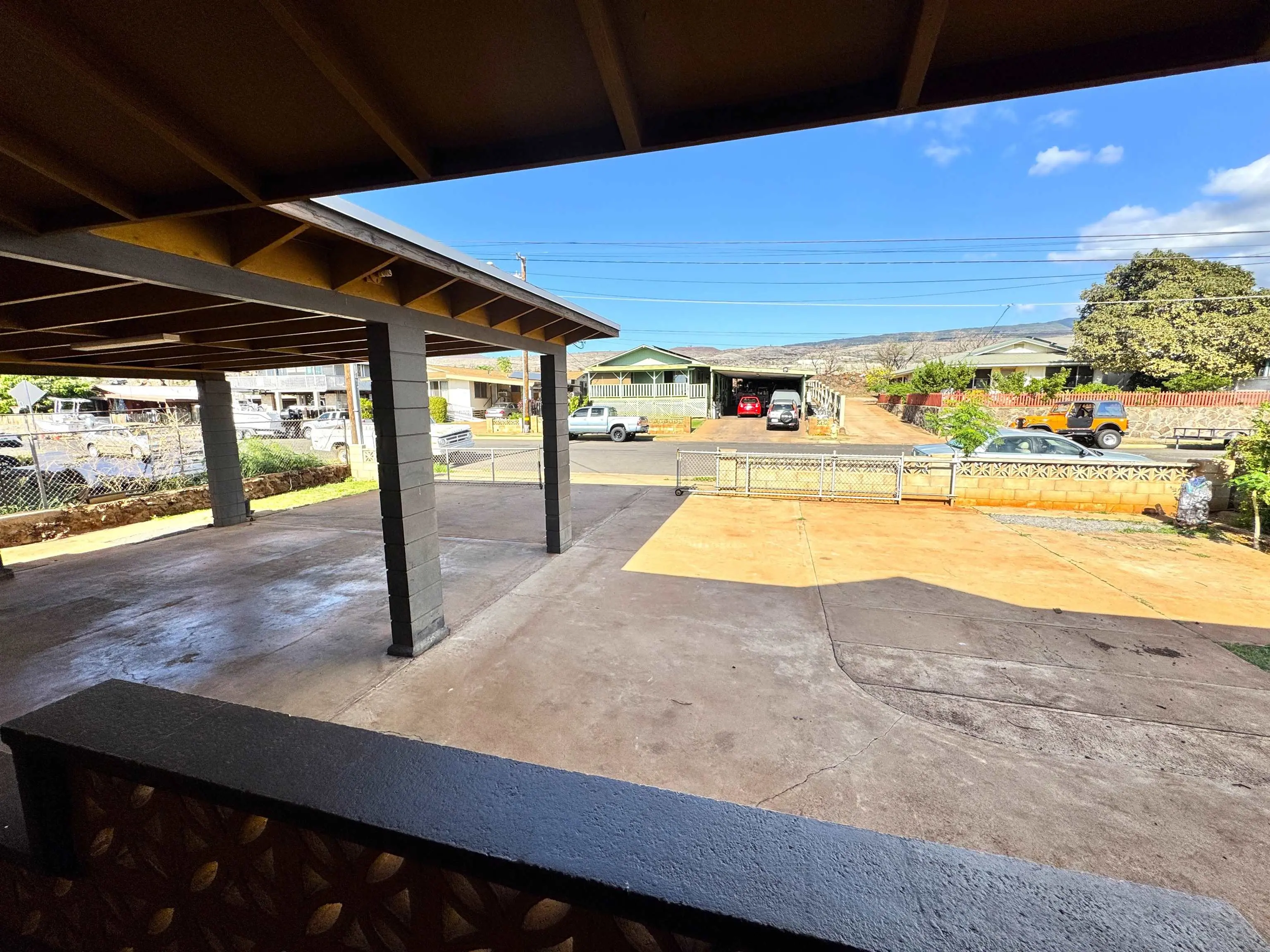 Perched on the top street of Ranch Camp, this 3-bedroom, 1-bath home offers peaceful living with beautiful ocean and mountain views in a quiet, well-established neighborhood. Enjoy the feeling of privacy while still being just minutes from town, shopping, restaurants, and the hospital—a rare combination of convenience and calm. The main home is complemented by an attached ohana dwelling with its own private entrance, featuring 1 bedroom, 1 bath, and a kitchen—ideal for extended family, guests, or rental potential. A large uncovered lanai creates the perfect space for outdoor living, relaxing, or entertaining, while the spacious carport adds everyday convenience. Below the home, the open area provides additional storage and a versatile workspace, offering flexibility for hobbies, projects, or tools. The yard space is perfect for gardening, creating your own outdoor retreat, or enjoying the island lifestyle. This property offers views, versatility, and location—a solid opportunity to own a home with room to grow and multiple living options.
