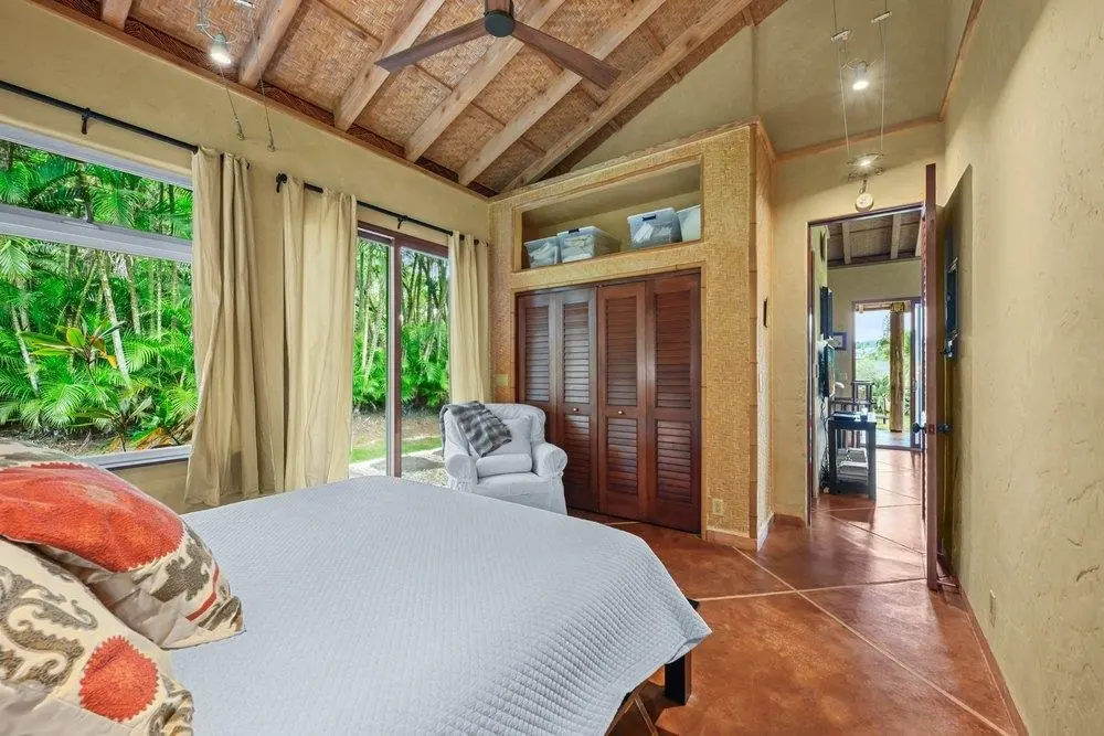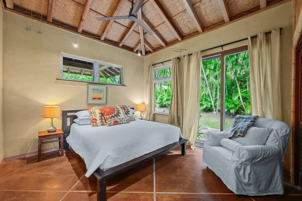 Custom-built in coral, this unique cottage is perched on the edge of Maliko Gulch in Haiku on Maui’s North Shore. Surrounded by ocean views and nature, the property offers rare privacy and tranquility. Set on a gated 2-acre estate, the cottage offers 2 bedrooms and 1 full bath with a very unique outdoor shower and covered lanai. The home features concrete glazed floors throughout with no carpet whatsoever, and most walls are finished in Venetian plaster. Located in a quiet Haiku subdivision just past Maliko Gulch called Haiku Makai, the property enjoys convenient access to some of Maui’s most desirable destinations: Hookipa Beach Park is only 2–3 minutes away, Paia Town is a 5-minute drive, and Kahului is approximately 20 minutes away. The property includes two additional structures. A small dwelling is located near the gated entrance and is occupied by the homeowner part of the year. Additionally, a spacious main home with a tennis court and pool is located opposite to the cottage, the 2 structures are very private from each other. No use of tennis court or pool is included in the rent. The property is not fenced, no garage/no carport.