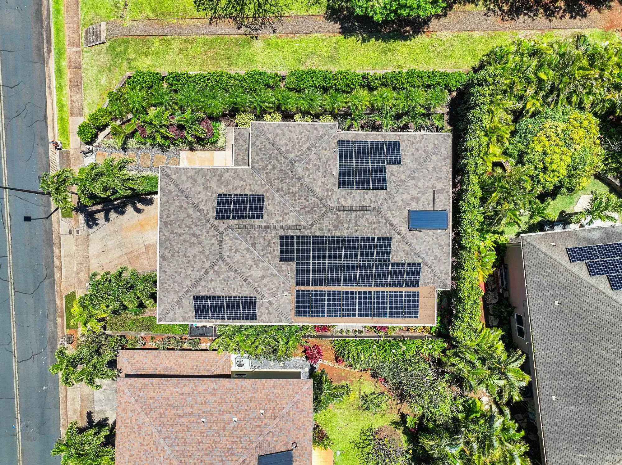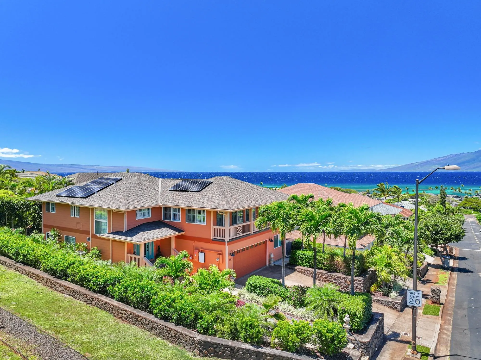 Thoughtfully upgraded for both luxury and long-term performance, this residence offers breathtaking panoramic ocean views and the perfect blend of comfort, sophistication, and modern efficiency. Since 2022, the home has undergone extensive improvements, including a 50-year CertainTeed Presidential roof, owned PV system (37 panels) with 2 Tesla Powerwalls, solar hot water, and a new 5-ton central A/C system. Offering 2,172 sq. ft. of air-conditioned living (including sunroom), the flexible layout features 3 bedrooms, 3.5 baths, a family room, and an office. Interior upgrades include wood flooring, remodeled downstairs bathrooms, new appliances, plumbing fixtures, lighting, plantation shutters, and shower glass. Outdoor living shines with over 1,100 sq. ft. of covered lanai space (608 sq. ft. upstairs, 537 sq. ft. downstairs), ideal for enjoying Maui’s sunsets and ocean views. Additional improvements include new landscaping and irrigation, rock wall extension, fencing, gutters, attic insulation, concrete walkway, garage door opener, and fresh interior/exterior paint. Permitted additions include an entry/foyer, a sunroom, and a workshop. A move-in-ready West Maui home offering exceptional upgrades, energy efficiency, and stunning ocean views.